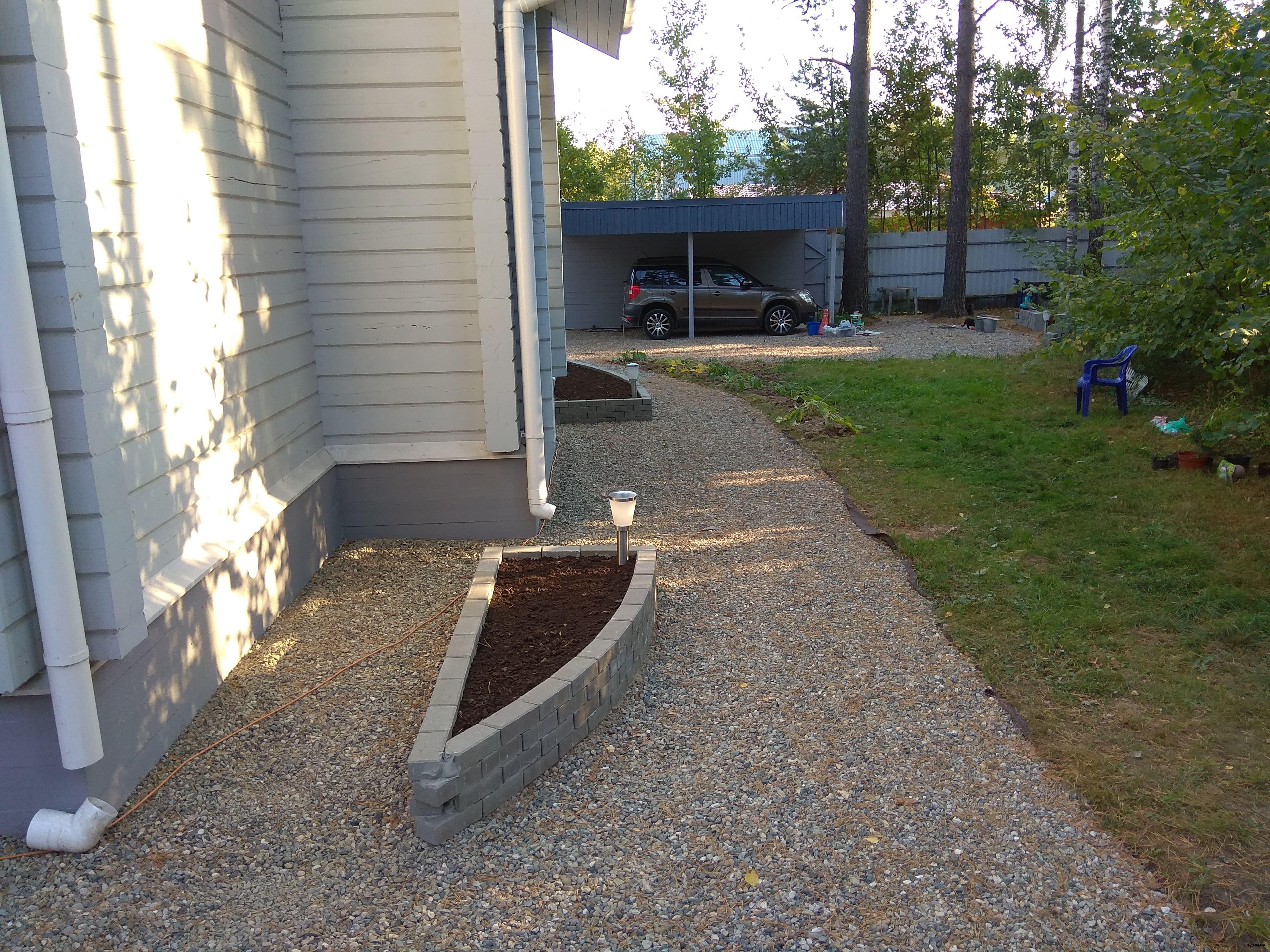 Не по теме немного. Но вот стеночки-бордюры заинтересовали.. там же просто тротуарный камень или кирпич без всякого фундамента? Да? А то мне мужу инструкцию по сооружению канители надо дать, ищу и приглядываюсь..