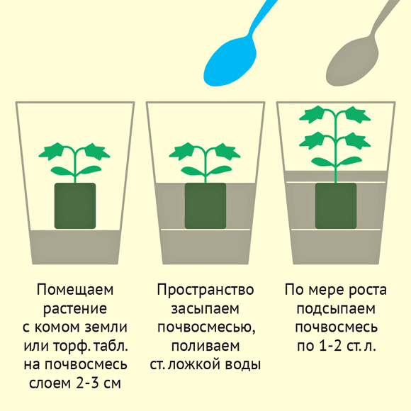 А я делаю по такой схеме (сначала - таблетка в маленьком стакане, затем ком из этого стакана в большом 0,5 л стакане). Очень удобно. И никаких стрессов растению и повреждений корням.