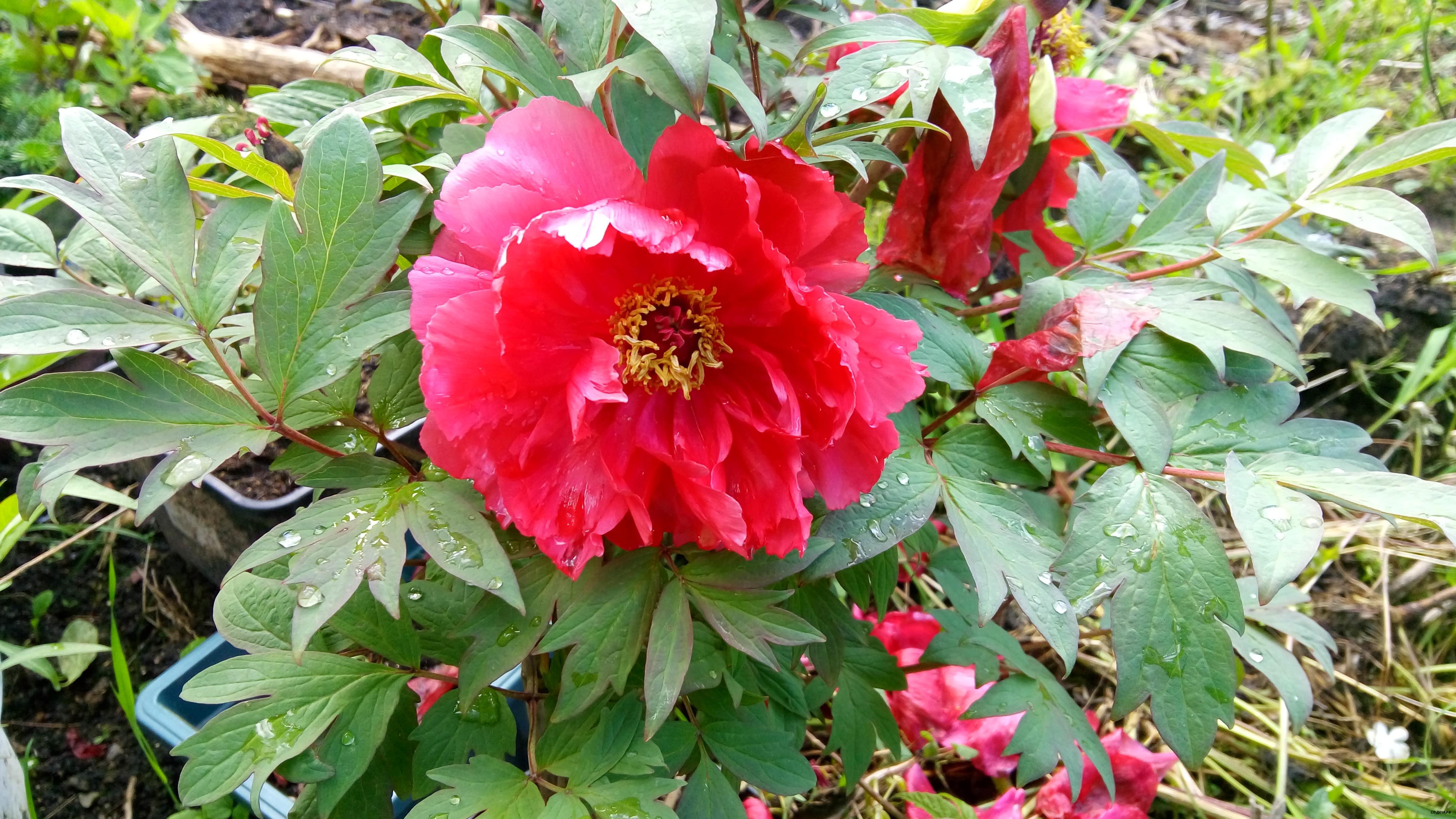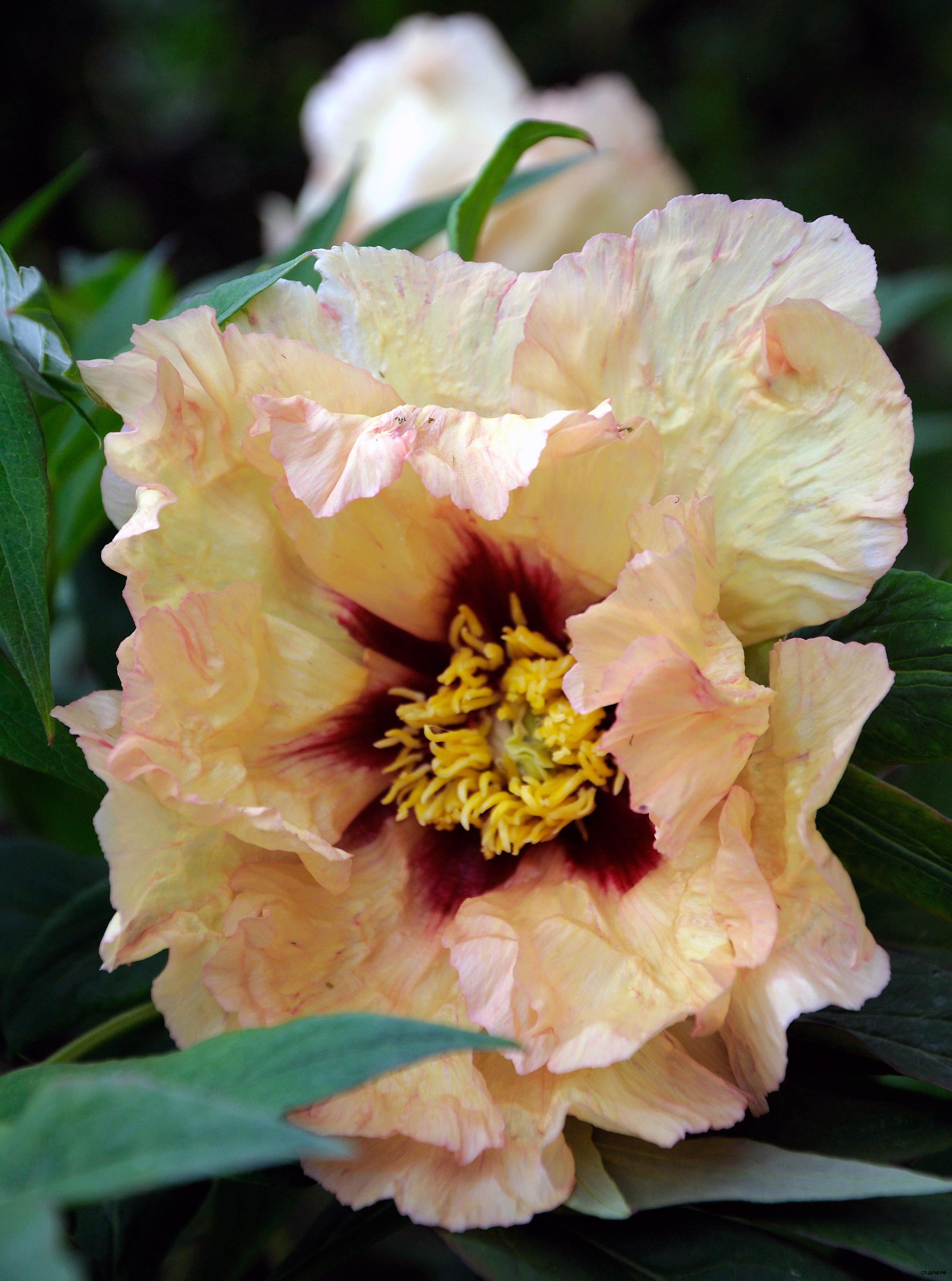 Впервые распустился еще один древовидный пион, название которого утеряно два года назад в процессе пересадок пионов.