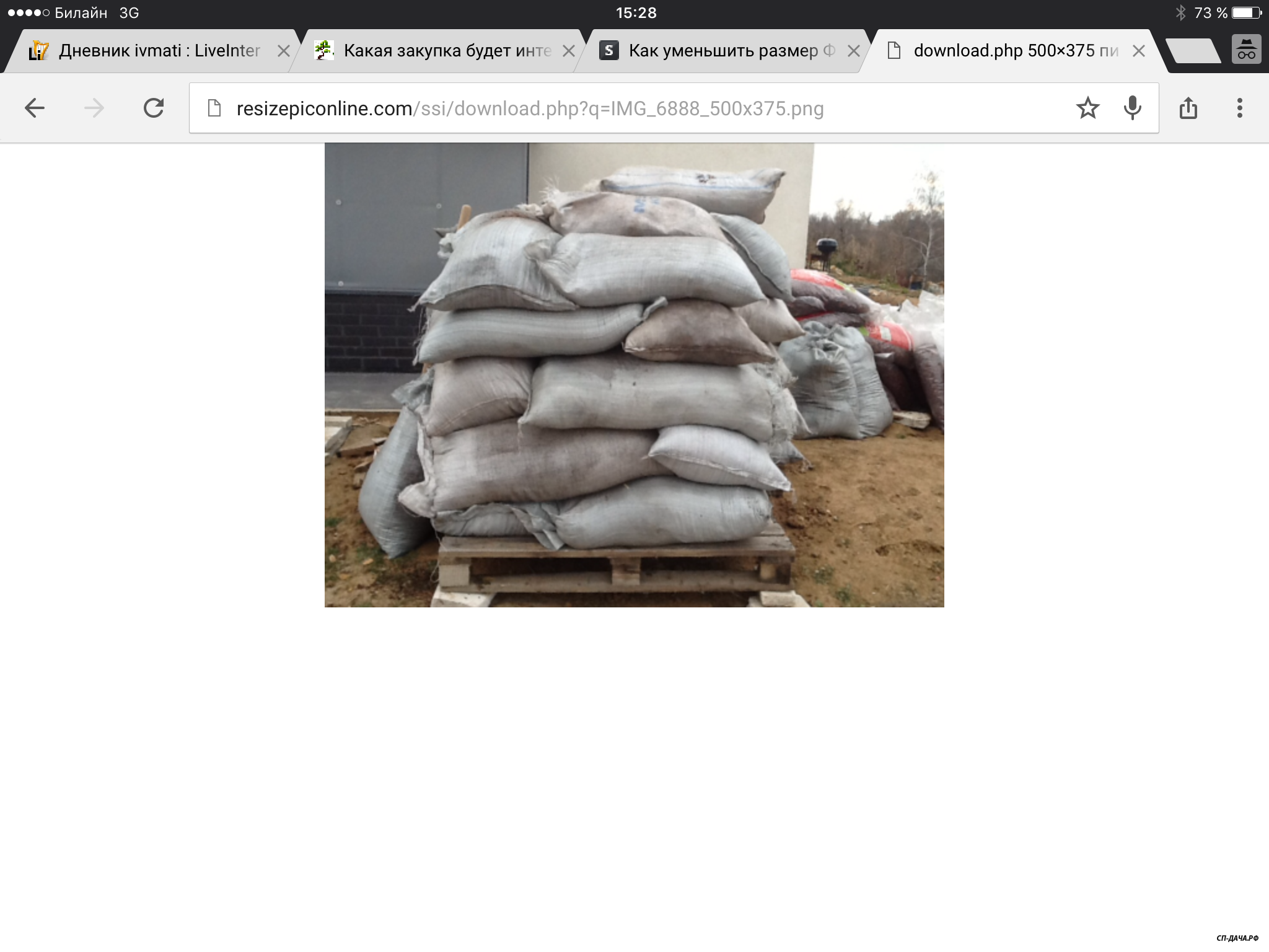 Ого! Спасибо, что предупредили! Я тогда буду брать с собой помощь!arinka писал(а):Это в таких мешках была мульча, мелкая кора. Выглядит она вот так. Выходит в туже цену практически в два раза больше. Мешки неподъемные. Таскать , как полиэтиленовый не получится. Я их волоком таскала по участку. Или на тачке. А полиэтиленовые на раз!