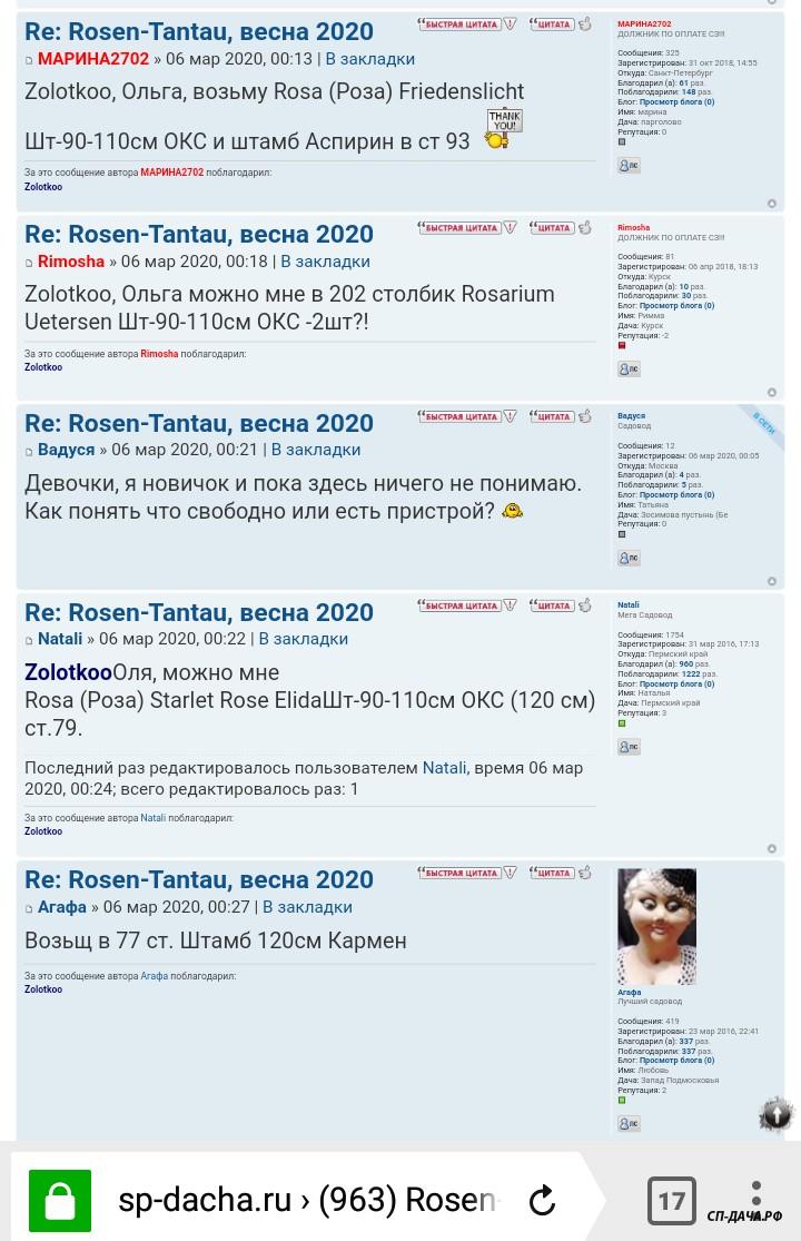 У меня в сообщении от 19.02 в 9-02 страница 66 в Rosen -Tantau исчезла «спасибка» . Просьбу о переносе не может подтвердить Участник. И в новом повторном сообщении история та же. На сайт захожу под своим ником
