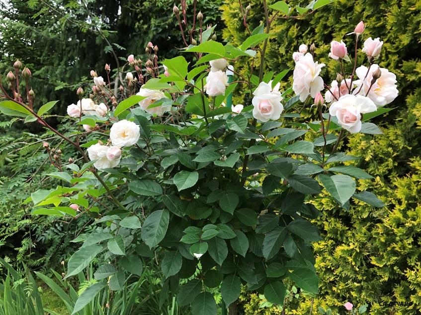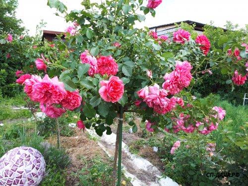 я уже видела этот разговор про RU, потому и показала фото. Я бы от него не отказалась. Зимует без проблем, я его просто пригибаю в общий розарий, отдельно не обматываю бошку. Пятнистости бывают, опрыскиваю вместе со всеми розами Скор, Фундазол, но он не особо и болеет. У меня как то образовался переизбыток Розариумовsia писал(а):Да, Оля, особенно интересно узнать про RU, сколько ему лет, чем болел, как лечите? Я уже во всех темах про него расспрашиваю, никак не решусь заказать. А у Вас ну, прям, шедевральный штамб!