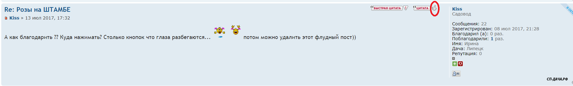 Ирина, вот смотрите, обвела в кружочек.Kiss писал(а):А как благодарить ?? Куда нажимать? Столько кнопок что глаза разбегаются...![]()
