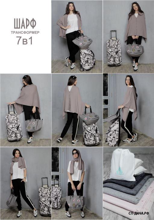 Шарф-трансформер - уникальная вещь, в состоянии заменить целый гардероб! Вариантов много, главное фантазия!! Каждое изделие упаковано в индивидуальный мешочек с вложенной инструкцией.