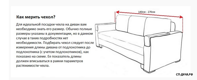 Растяжимость чехла с учётом подлокотников: 140-270 см.