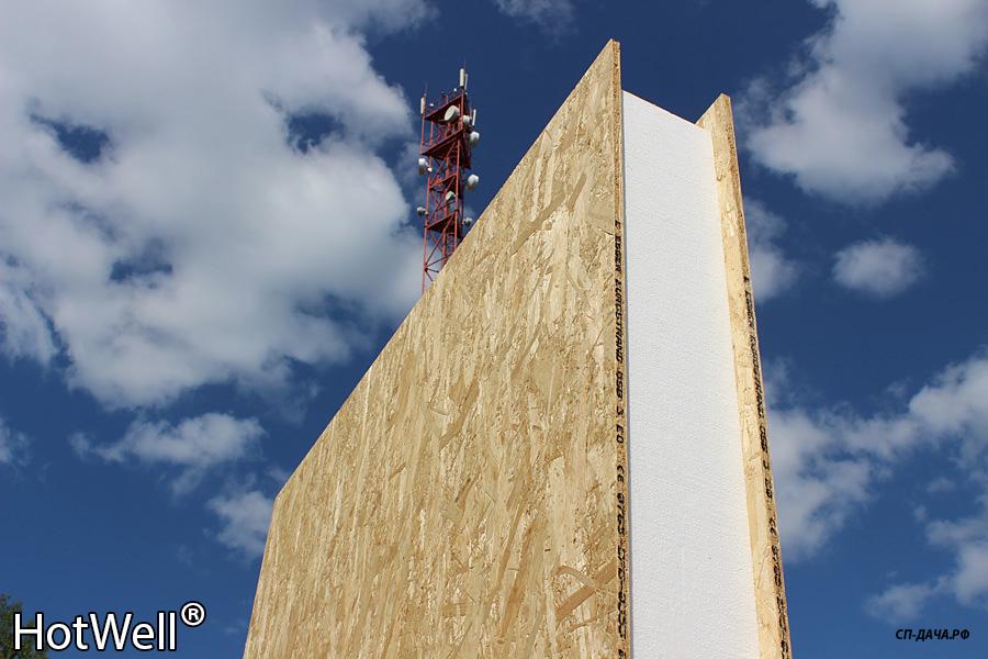 , т.е. из панелей, изготовленных из пенополистирола, облицованных ориентированостружечными плитами типа OSB. Толщина панелей из которых сделаны внешние стены, пол и потолок второго этажа - 22,4 см. Так что, дополнительного утеплителя, точно, не нужно! Степлерили пароизоляцию, потом обрешетка и сайдинг...