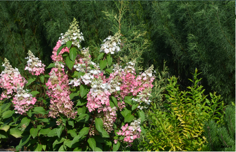 на первом фото Гортензия Пинки Винки и Бирючина золотистая.( чёт она получилась почти зеленая на фото... потом она вся желтенькая становится)