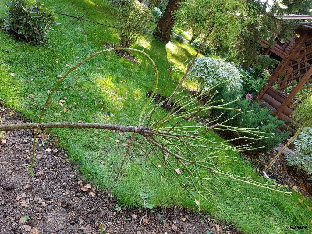 Катюш, спасибо огромное! Очень ценная информация! Вот эти удочки на фотке, которые вырвались вверх, нужно подвязать прямо в таком положении, как они растут. Так удобнее укладывать. Гнуть их лучше, когда одревеснеют. Я это делаю весной, потихоньку.ЖавороноКатя писал(а):... поделюсь инфой по этому штамбику