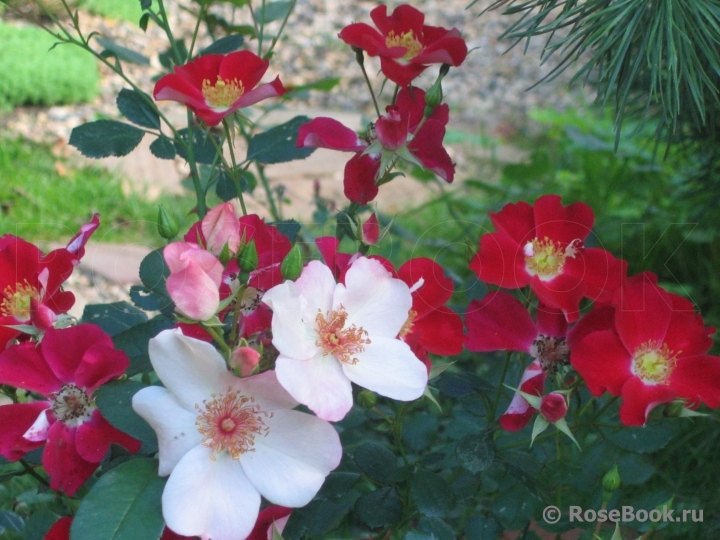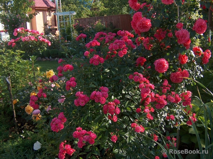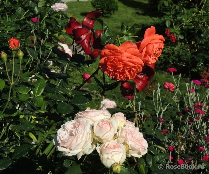 Девушки, с удовольствием послушала раздел о сочетаниях с красным. Мне кажется, что красный - всегда спорен из-за динамизма цвета, который в принципе всегда и везде будет доминировать - в любых сочетаниях. И наше восприятие цвета в определенных условиях - дело вкуса. Не знаю. В букетах мне нравится красный и розовый, в саду - категорически нет. Хотя предметно сажала красные, белые, розовые вместе, тщательно подбирая оттенки. Но в результате розовые убрала. В саду добавляется по меньшей мере зеленый разного оттенка и в разных пропорциях, который именно на розовом фоне мне кажется отыгрывается тенями. В общем, теплый красный мне кажется гармоничным с оранжем (если он не розовеет к концу жизни цветка, а таких роз - единицы и если пропорции соблюсти в зависимости от бОльшего количества оранжа примерно 2/3), кремовым или белым, а холодный красный уместен со многими (в том числе и розовым). Но все это -исключительно личные пристрастия. Попробуйте, например, тут розовый представить. Меня бы раздражал: