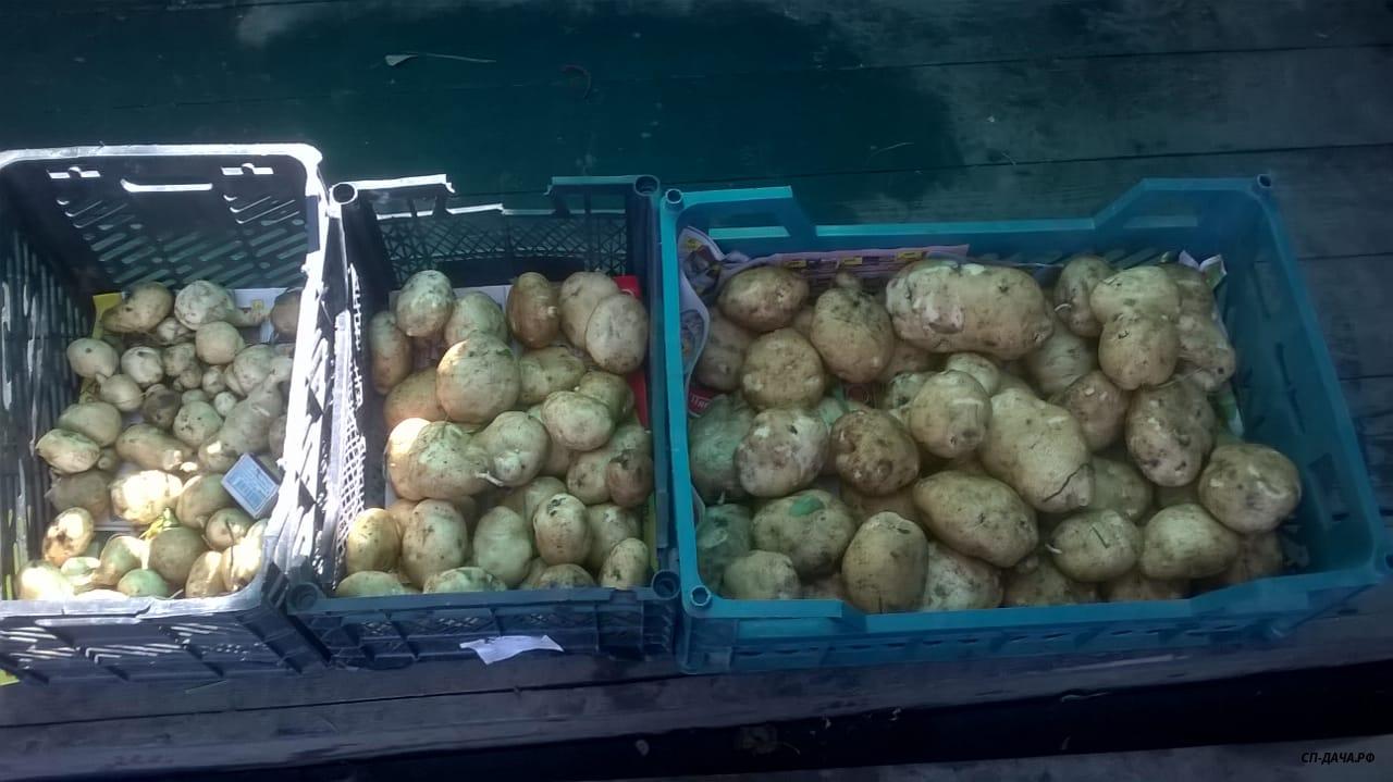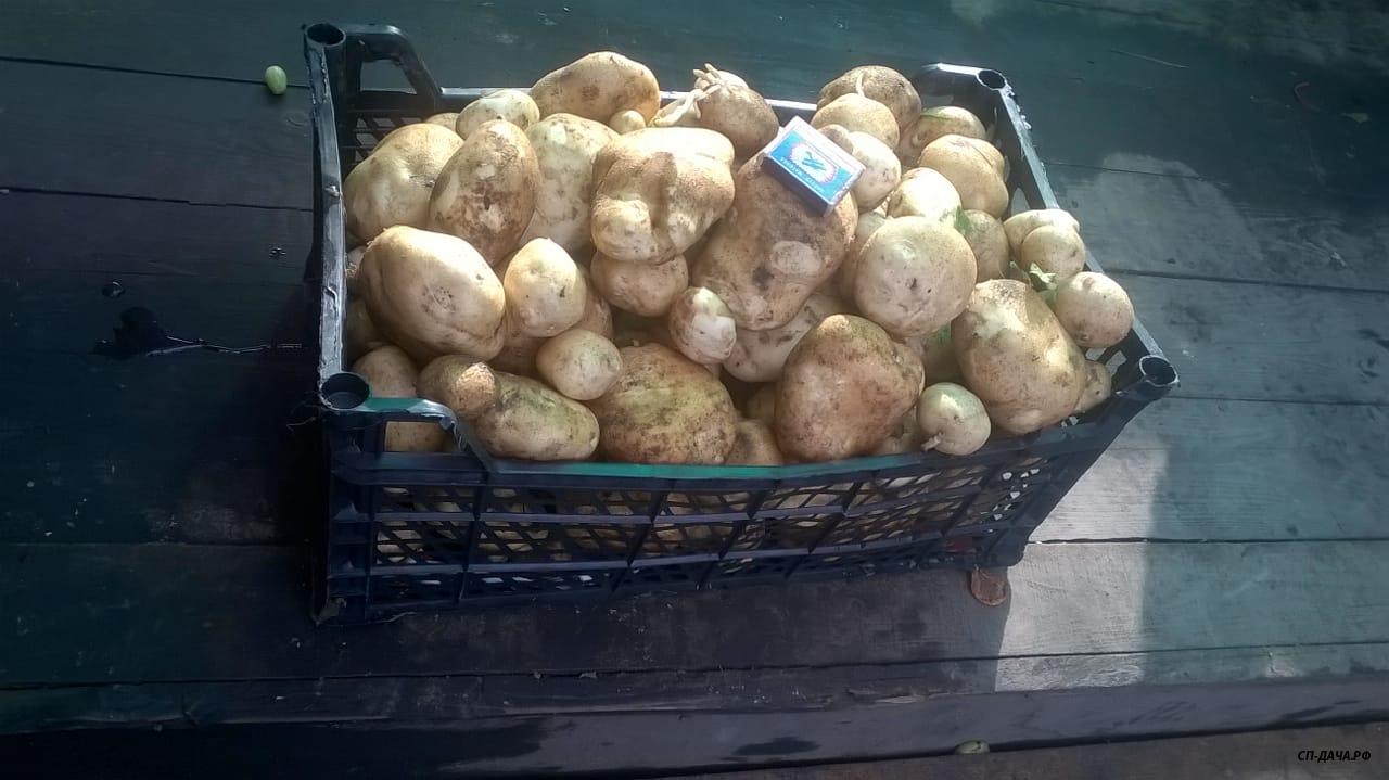 Это фото урожая с 4 крупных и 2 мелких клубней .