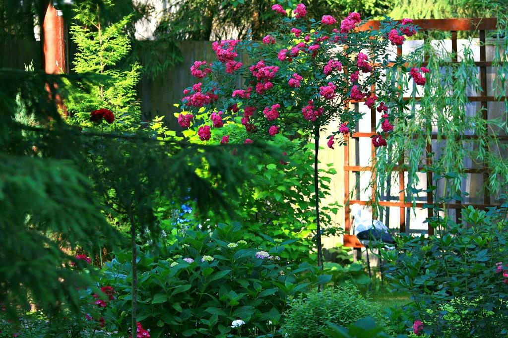 Bars, Оля, опять заглянула к тебе в сад....Ой, как у тебя хорошо! очень мне нравится твое решение за декорировать забор вертикальными решетками! Штамбы просто необыкновенные.... Очень красиво все сочетается с хвойными....не перегружено....А эта дорожка...Так и хочется прогуливаться по ней....