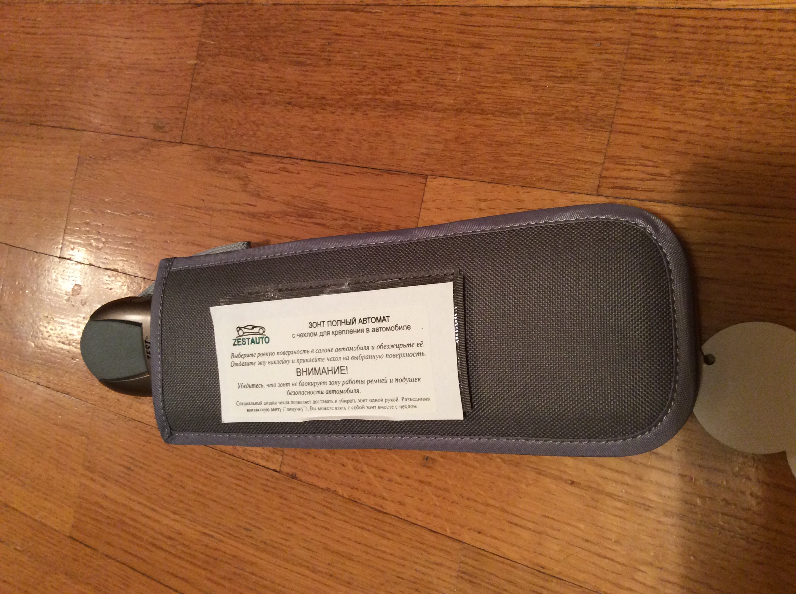 А второй зонтик special для авто. Такой солидный получился. Размах крыльев не маленький.)) Полный автомат. Приятная мягкая зонтичная ткань. Ну и приспособленьице для того, чтобы где-то в машине укрепить на виду. Клейкая лента с липучкой. Теперь думаю, кудо привесить, так чтобы не мешался, но и под рукой был, чтобы когда дождик не в багажник за ним лазить!