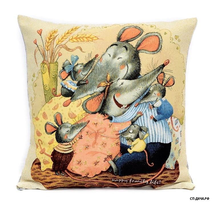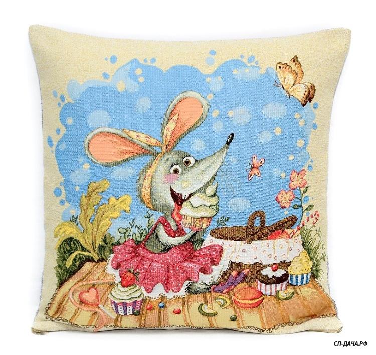 МЫШОНОК С КЕКСОМ - ГОБЕЛЕНОВАЯ ПОДУШКА 25х35 см 532 руб