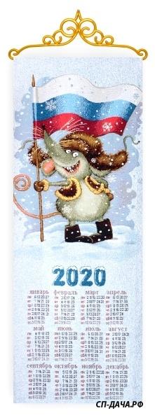2020 МЫШОНОК С ФЛАГОМ - ГОБЕЛЕНОВЫЙ КАЛЕНДАРЬ 35х80 см 355 руб