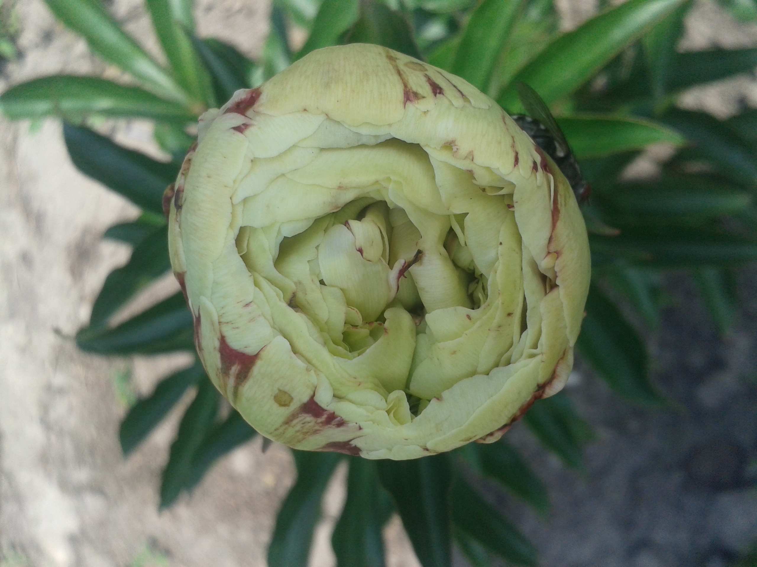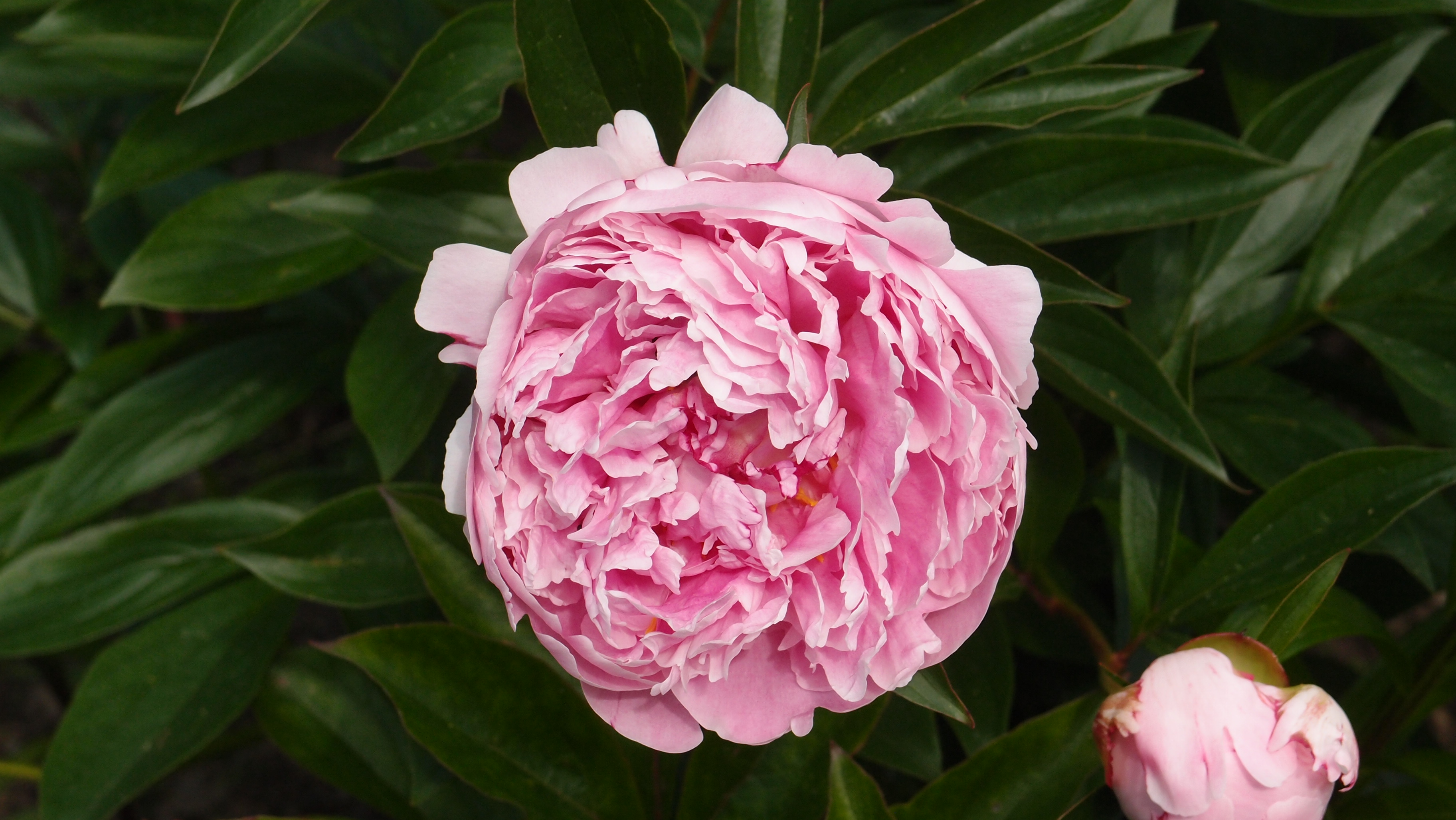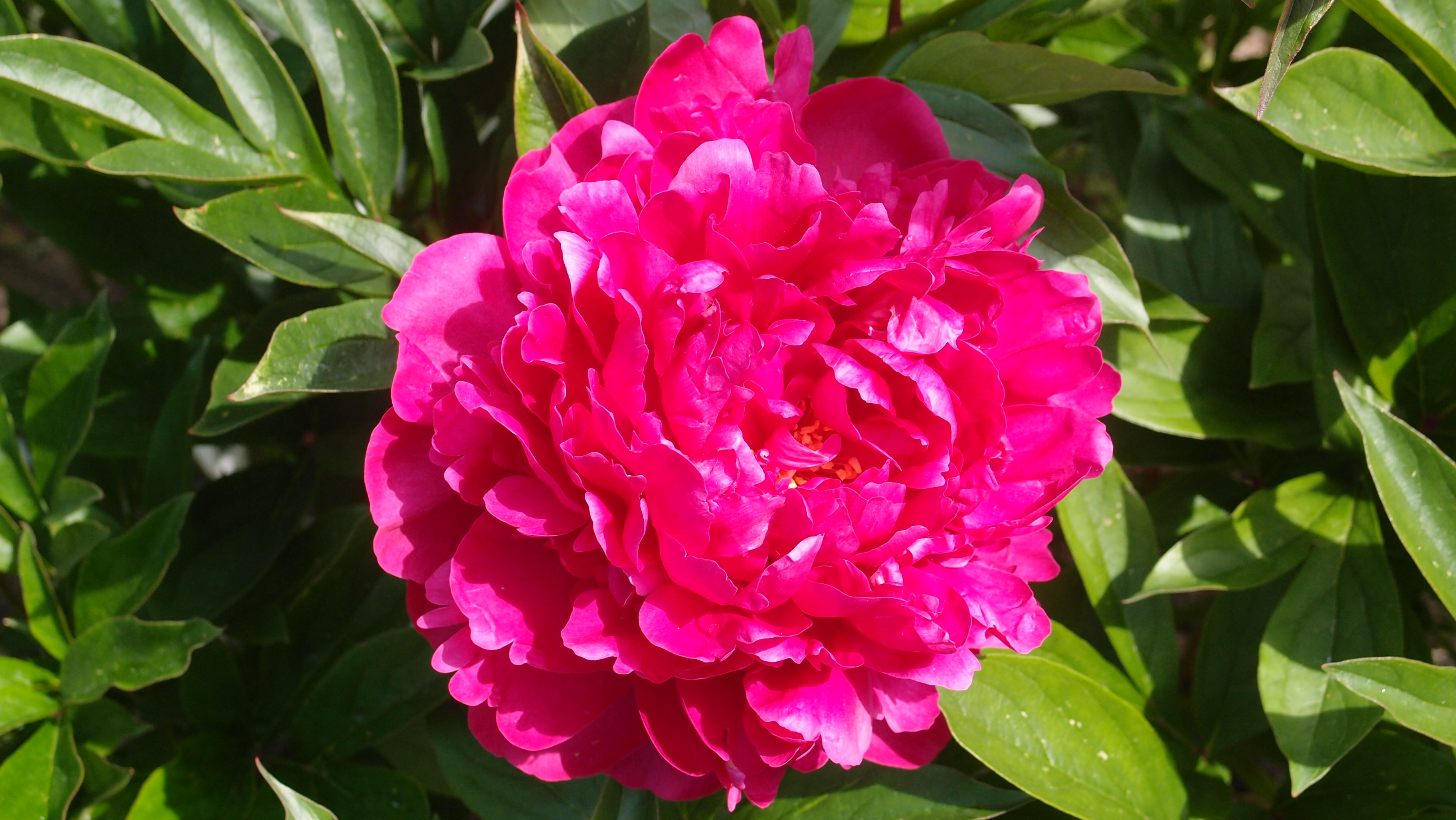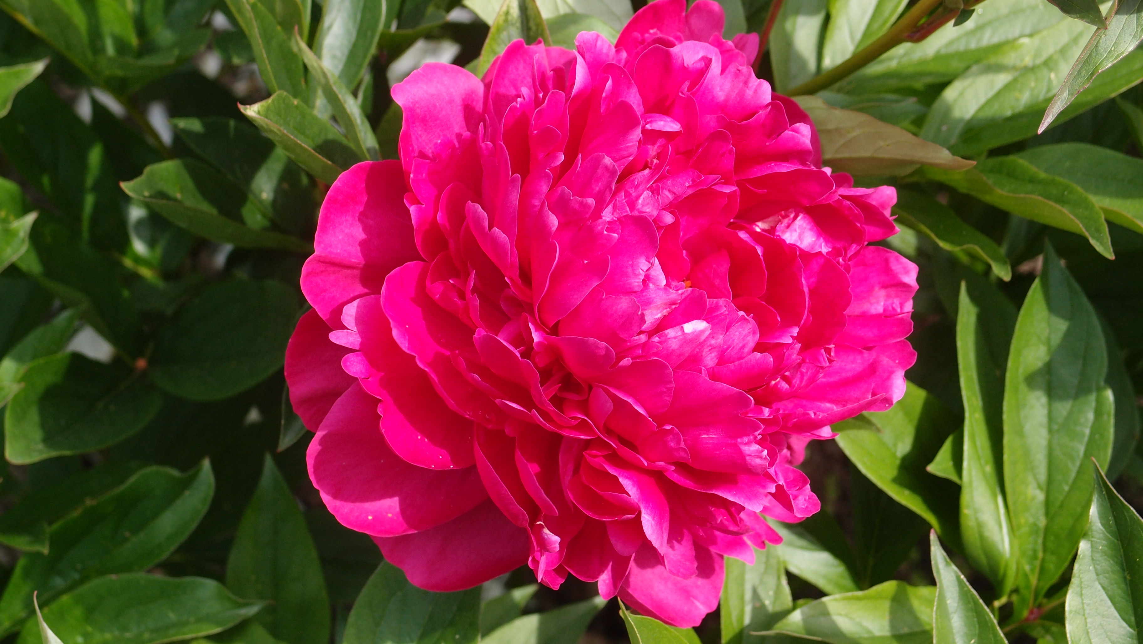 Кто-то шикарнейший куст пиона, всегда оч обильно цветущий, высадил рядом с проезжей частью около ржавого шлагбаума)))