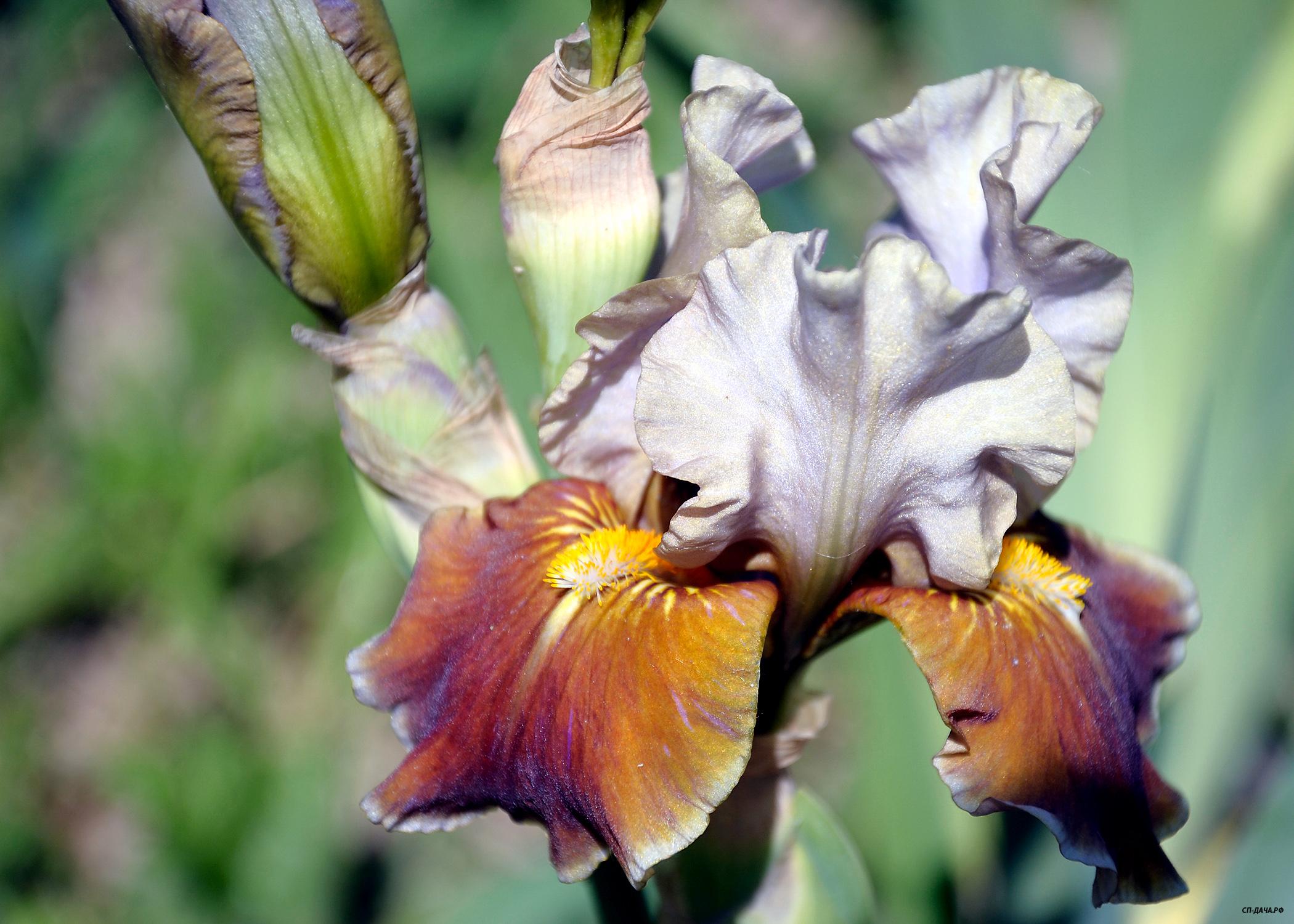 MID-AMERICA: ирис Man's Best Friend поразил невероятной расцветкой фолов и золотым напылением на стандартах Barry Blyth: ирис Ancient secrets рюшастый и неземной красоты. Мой хомяк ходит довольный и важный.