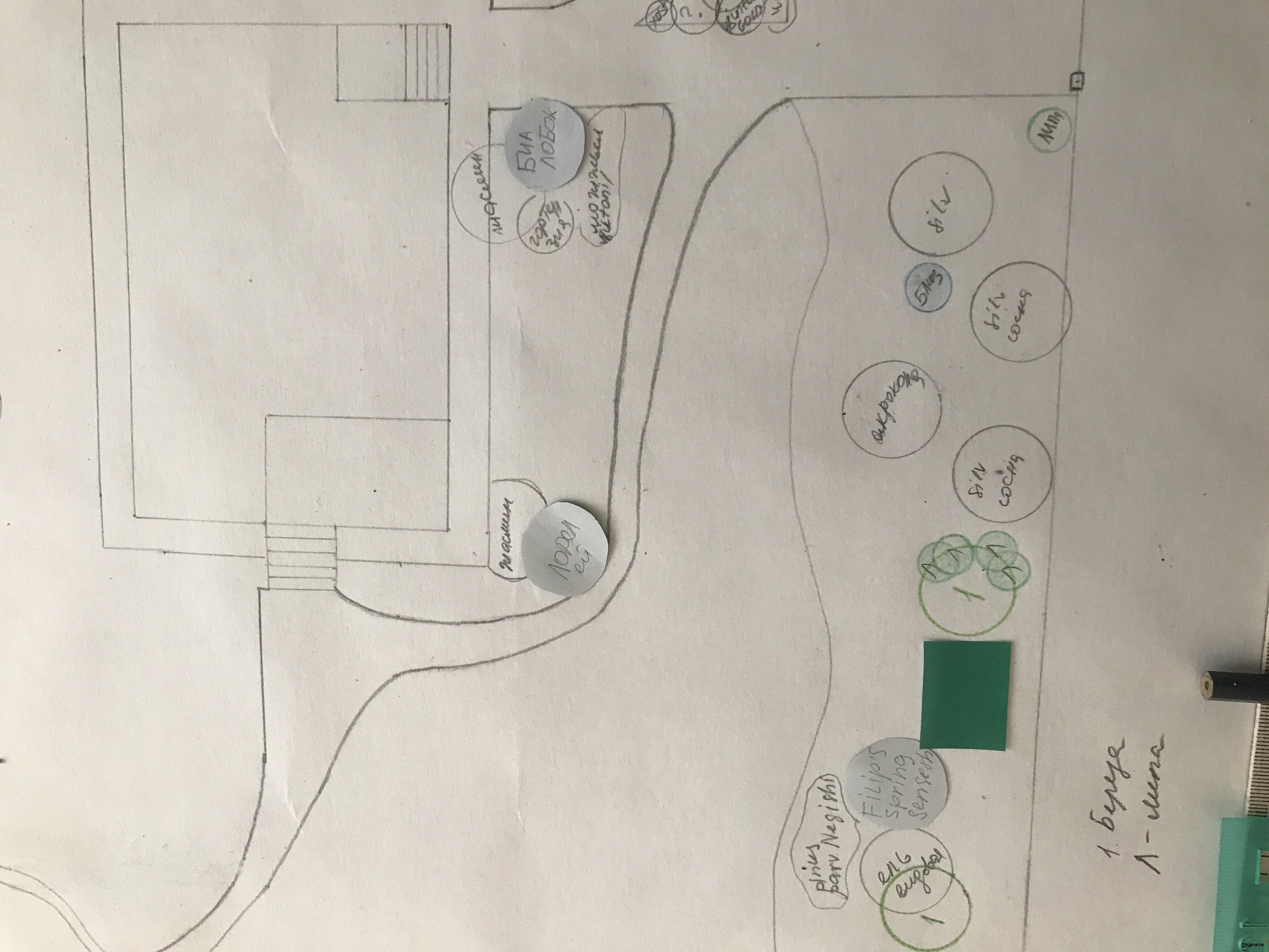 Чуть за ней жасмин (для объема) слева гортензия, перед ними пион или два... Рядом с качелЯми филипс спринг сенсейшн как бы чуть выступает.. даже не чуть. Она оторвана от видовой, но видовая служит фоном? Перед ними нигиши, как у Успенского ...