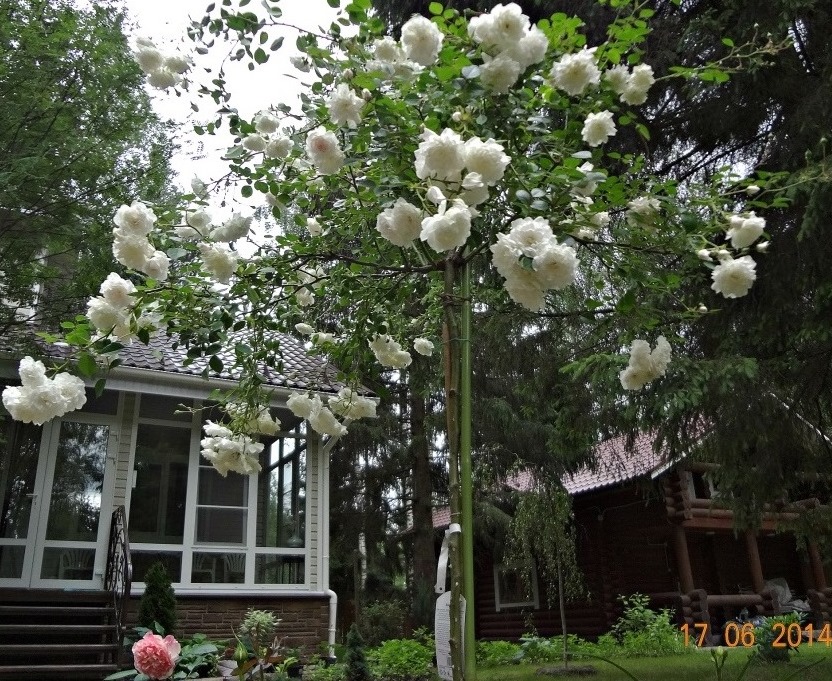 Нужна, Оль, но не в первый год и может даже не во второй. На второй год посадки мне хватило просто бамбуковой палки. Но её высота была на 60-70 см выше места прививки, чтобы можно было подвязывать к ней отрастающие побеги. Так как моя Свани на метровом штамбе, я ей задираю все побеги вверх. Тогда она и ростом выше становится, и цветки смотрят на нас сверху вниз.moriki писал(а):Bars Оля, для Свани нужна такая опора?