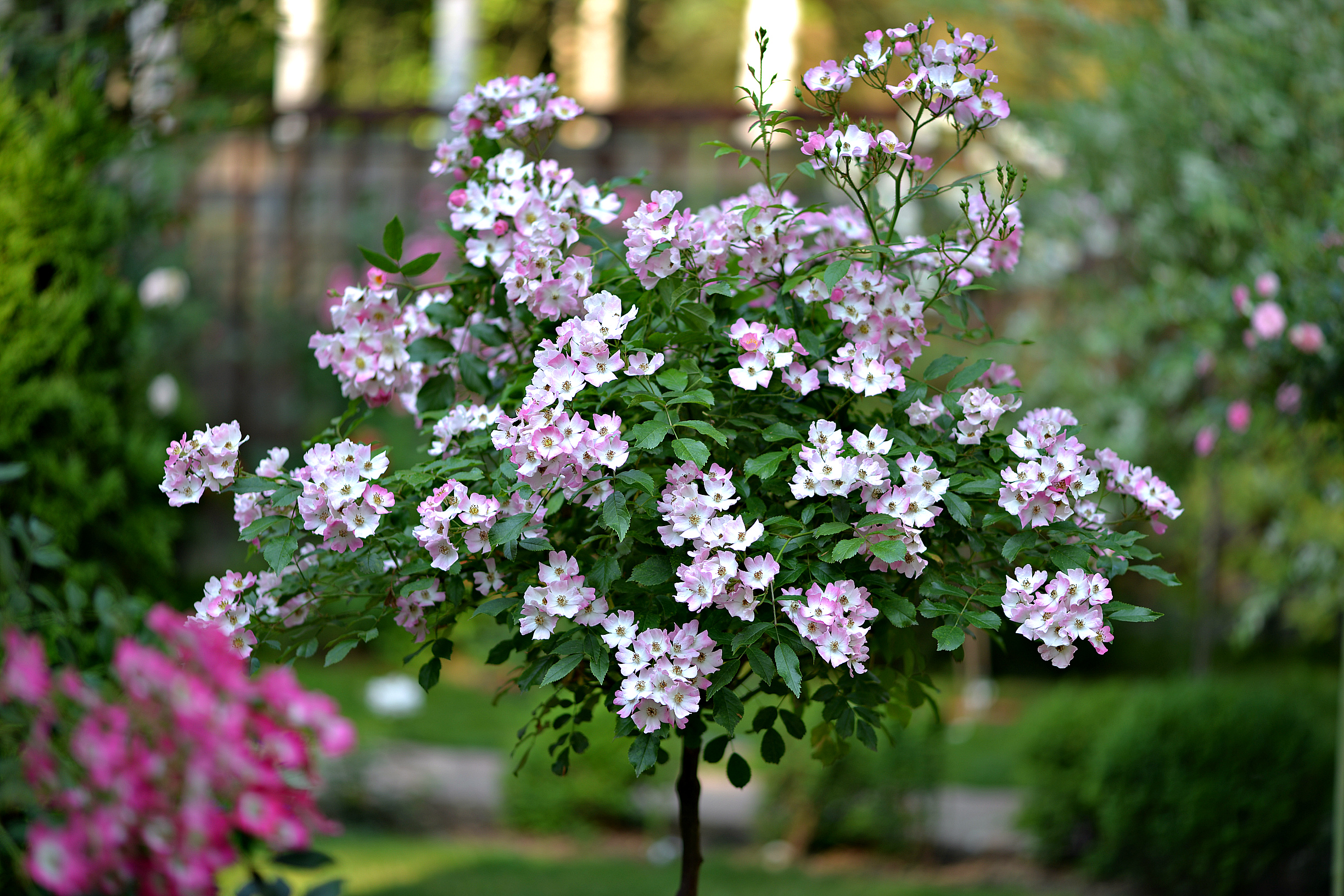 Ballerina и Lavender Dream у меня просто с бамбуковыми палками стоят. У них жесткие побеги, они хорошо сами себя держат.