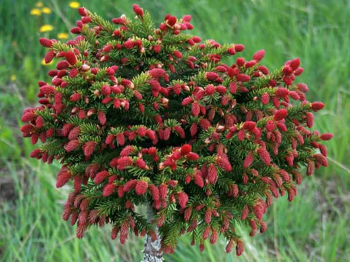 А вот ещё один сорт из того же источника, Picea abies 'Punapaula'. Типа сорта Rydal, но с повислыми ветвями. Этот сорт в России кое у кого уже растет.