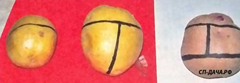 oevin, большие такие не кладу, поменьше выбираю. Но его все равно лучше глазками, по 2-3 глазка. Резать можно по такой схеме: