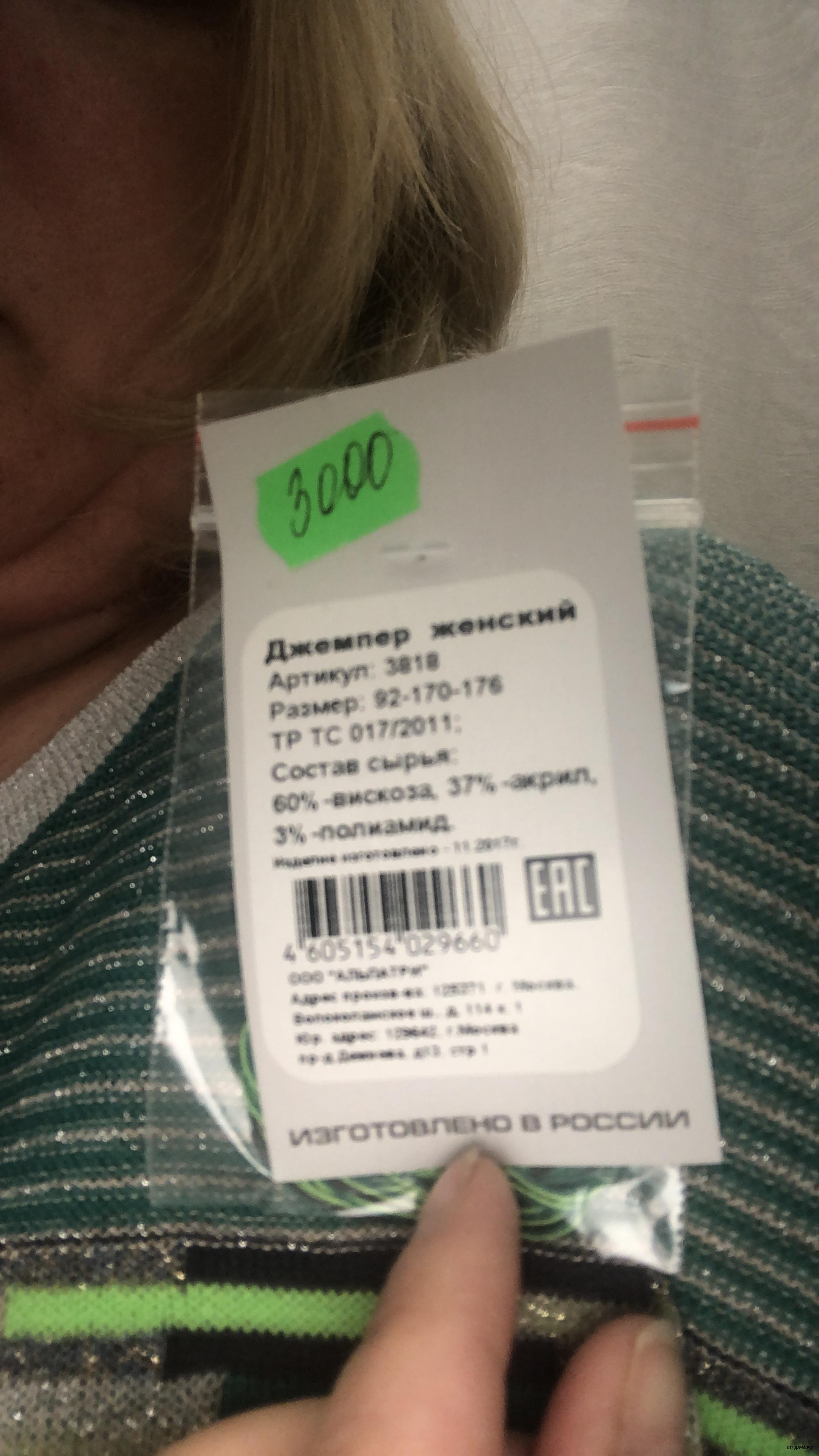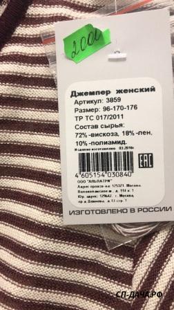 здесь размера не было ни где, сказали, что с выставки брали образец, состав не знаю, на мне джемпер не понравился. материал плотный