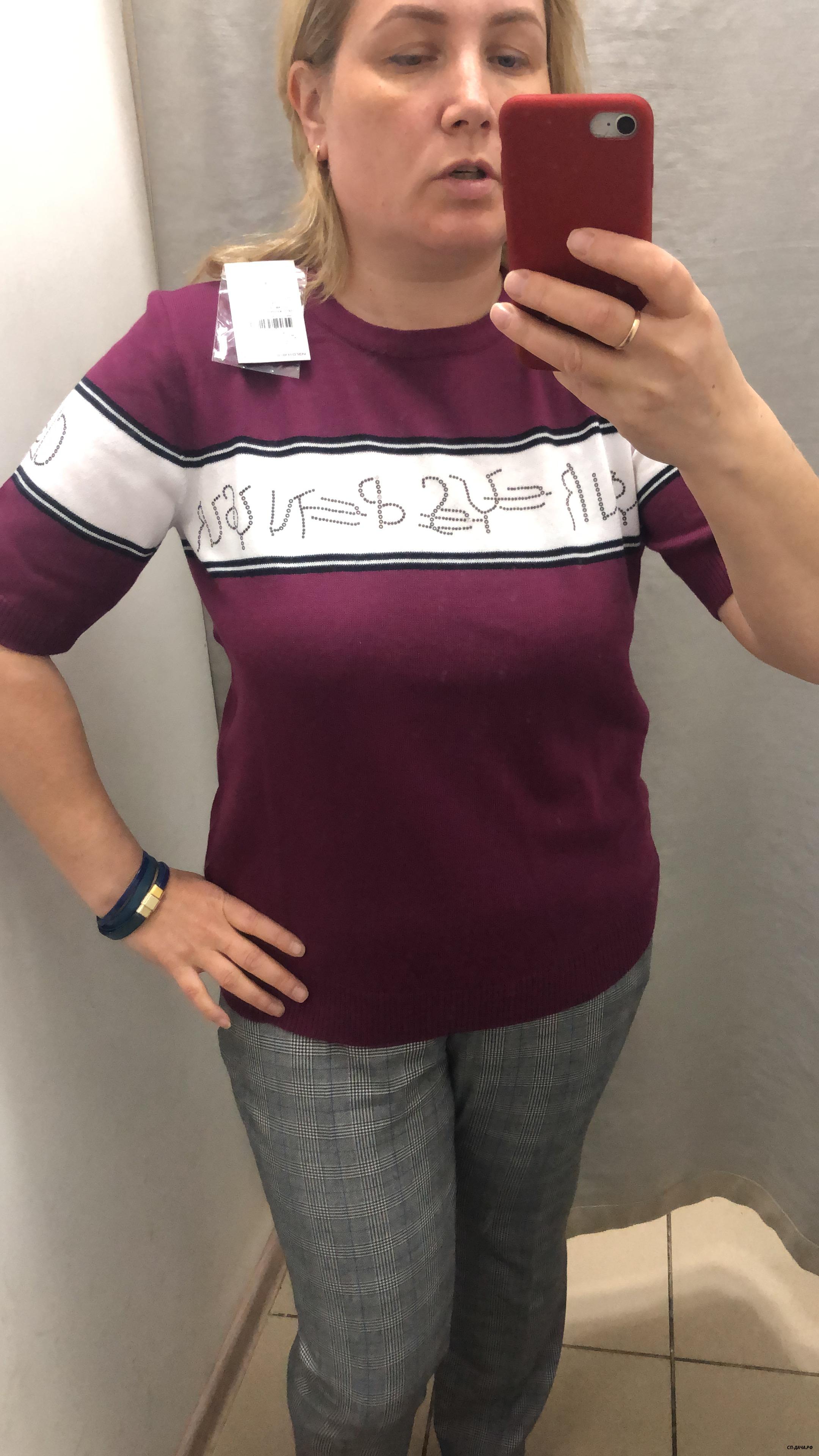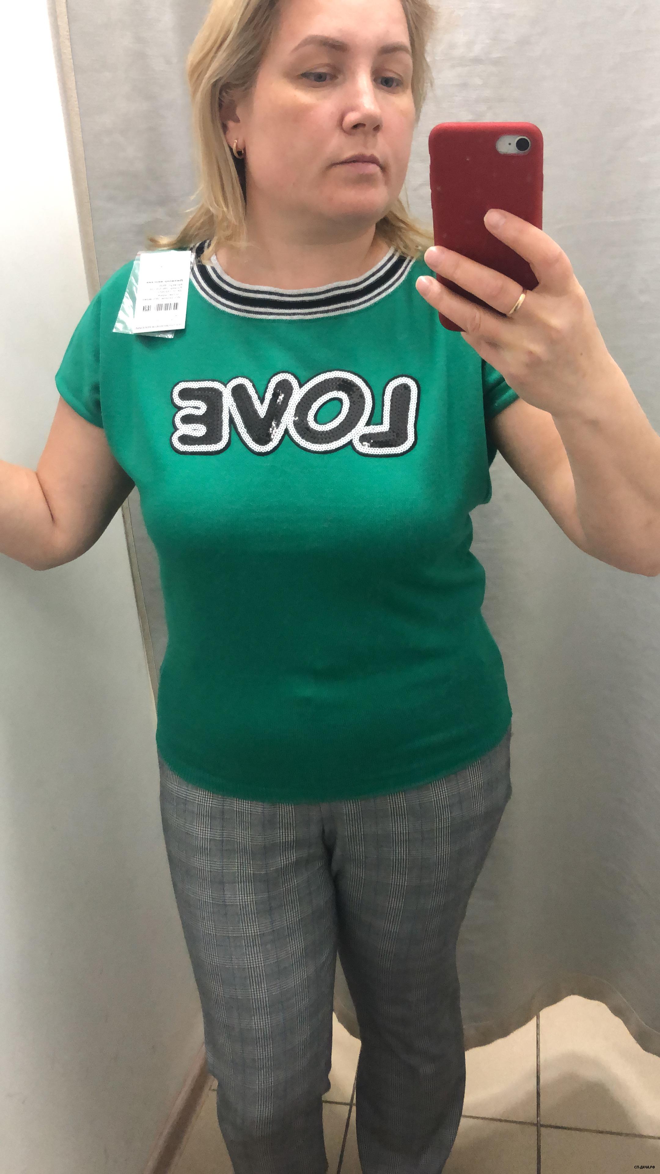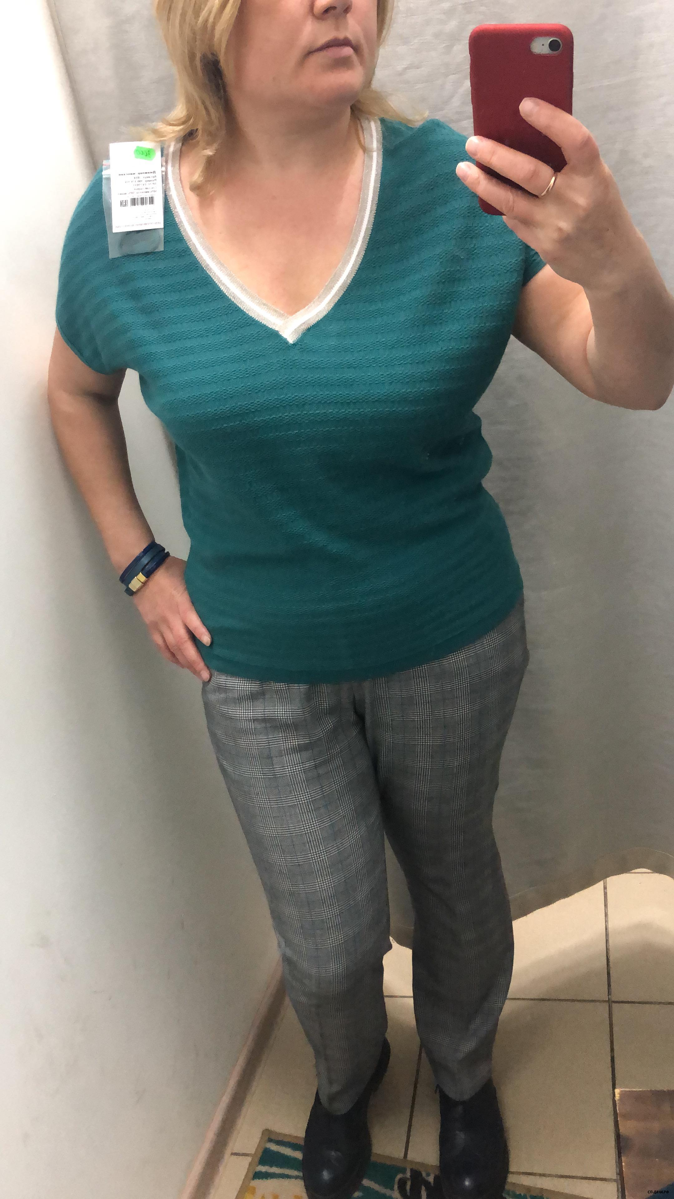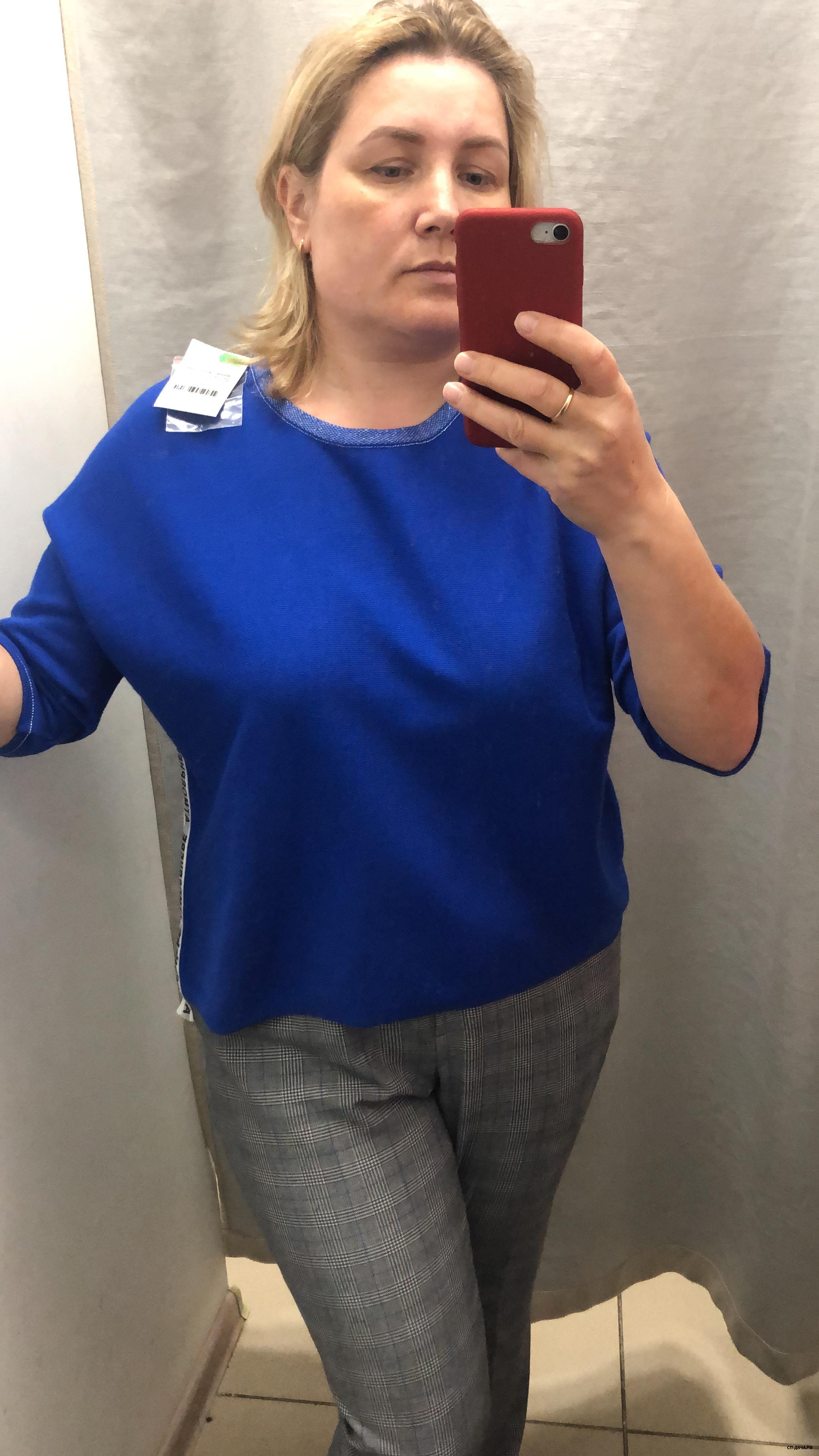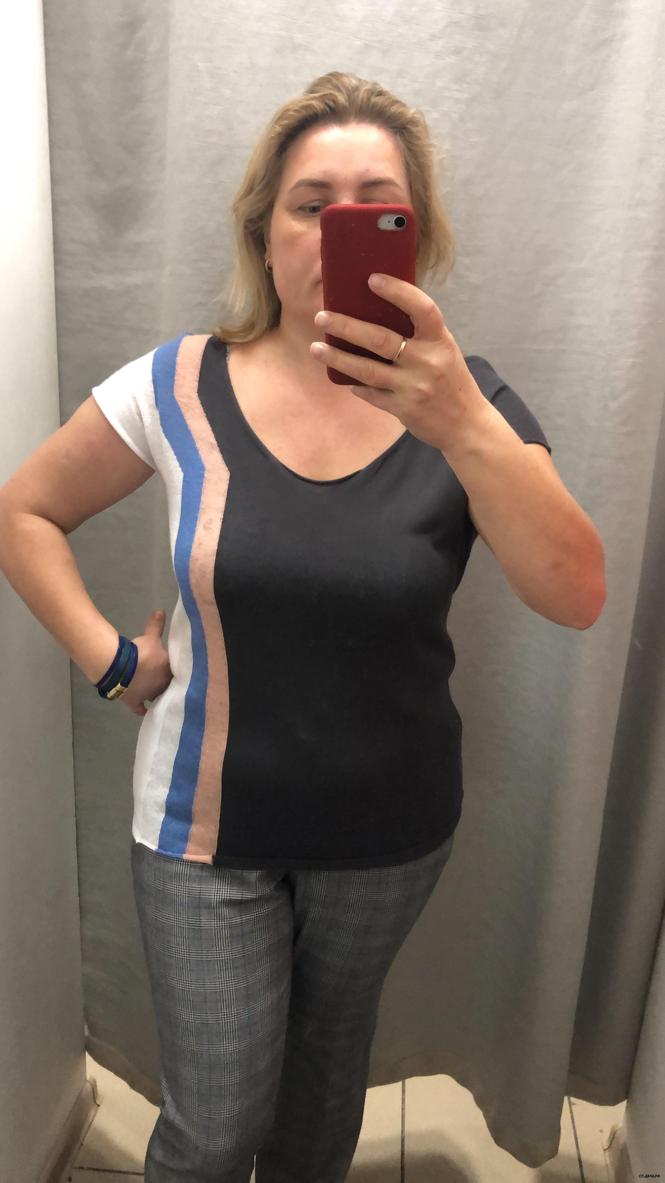 узковата в талии , и вырез большой , цвет не зацепил, может есть и другие цвета. но если брать на размер больше , будет широко на верху