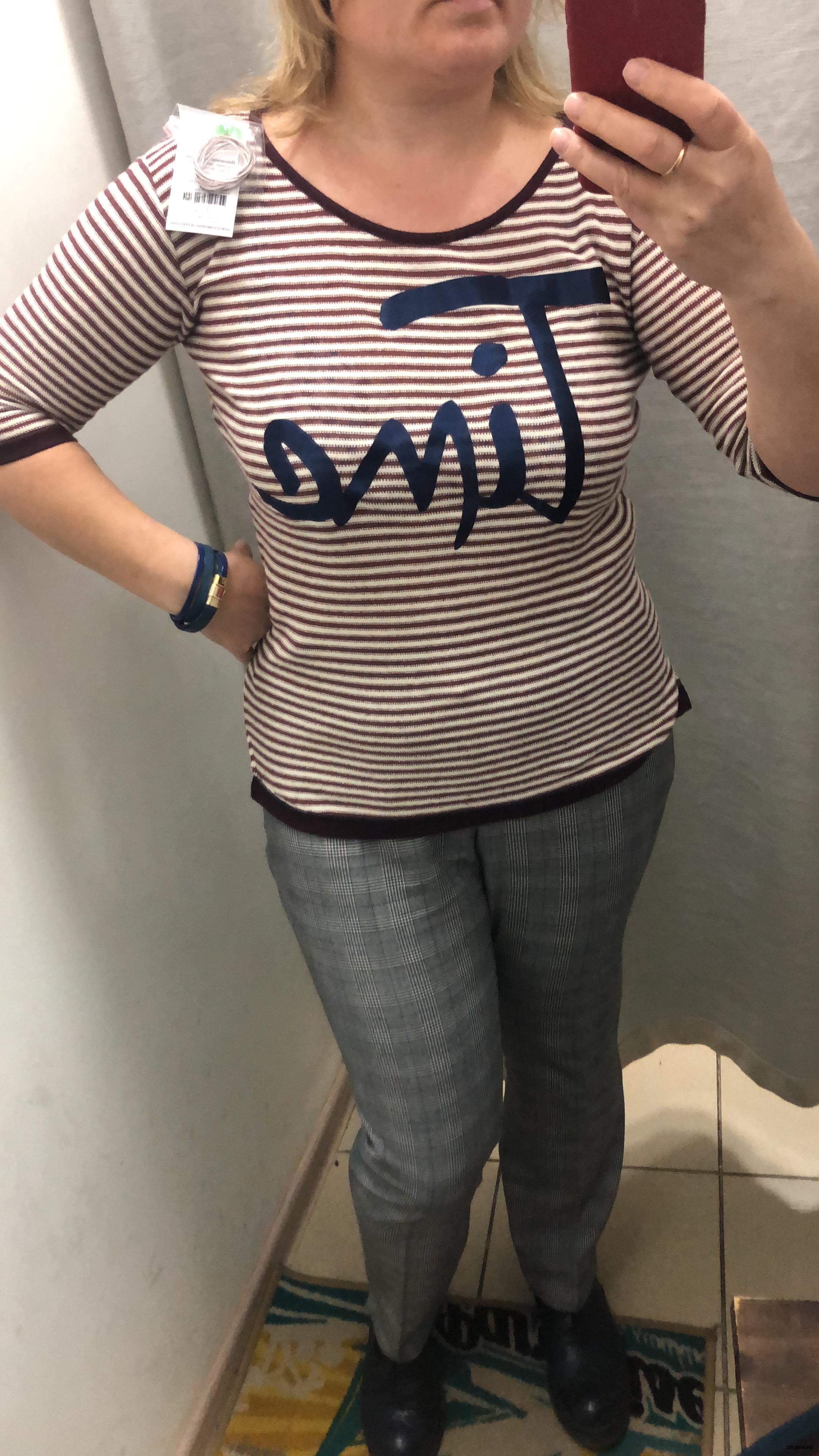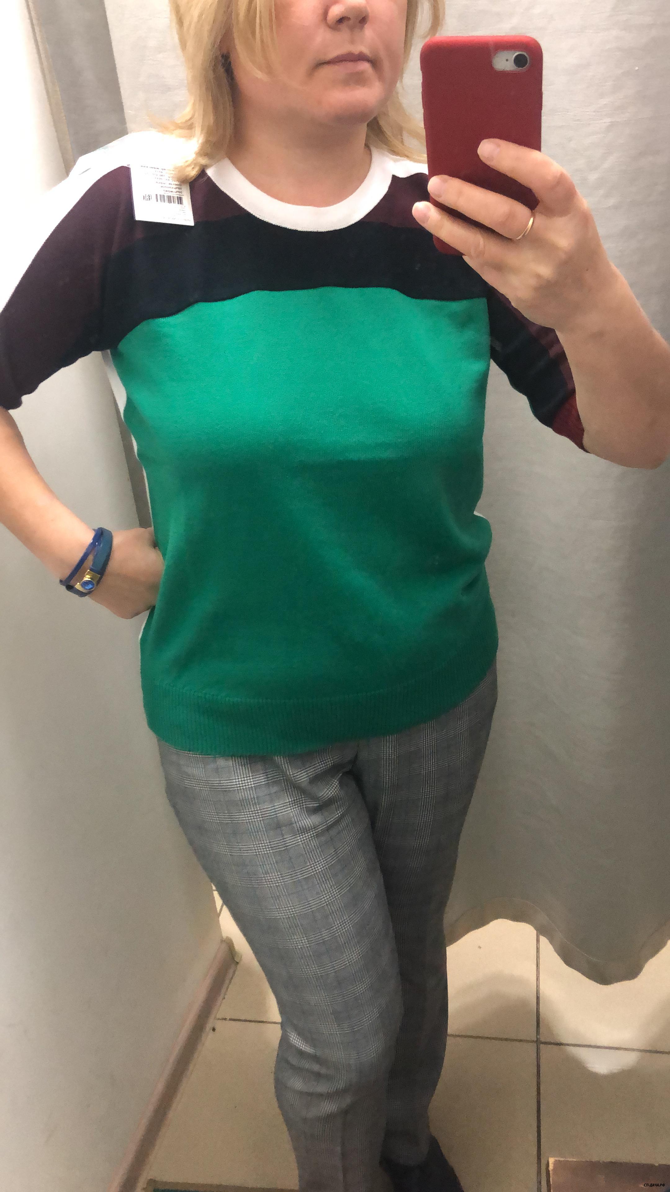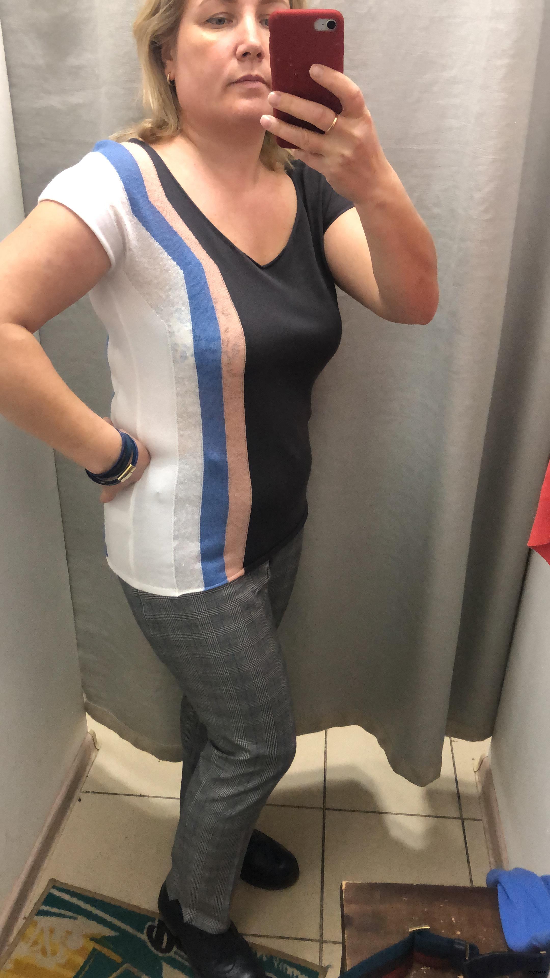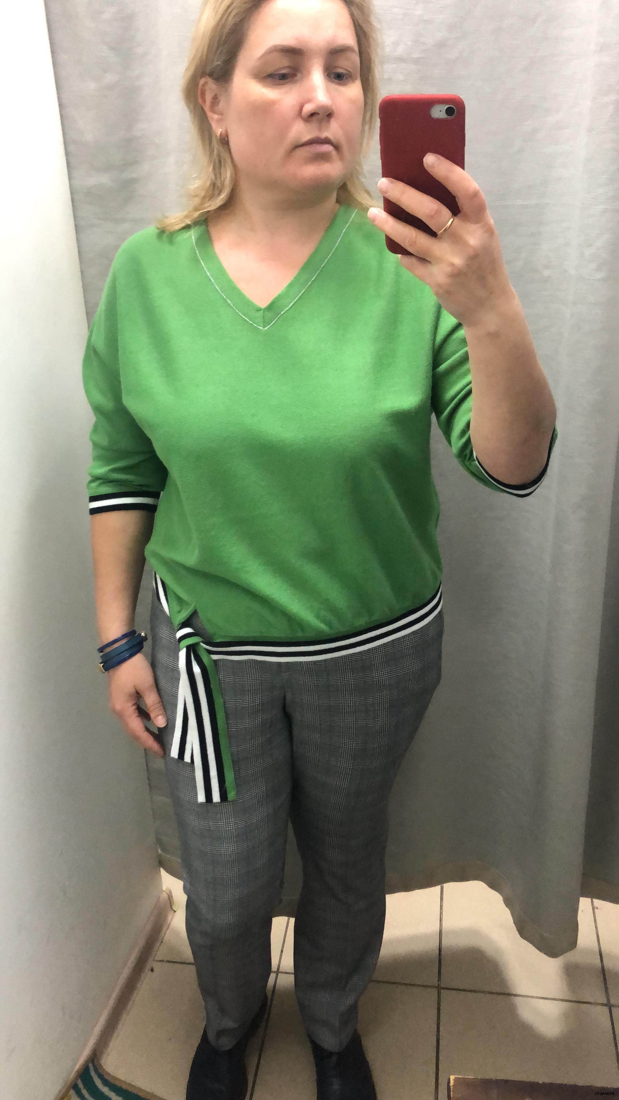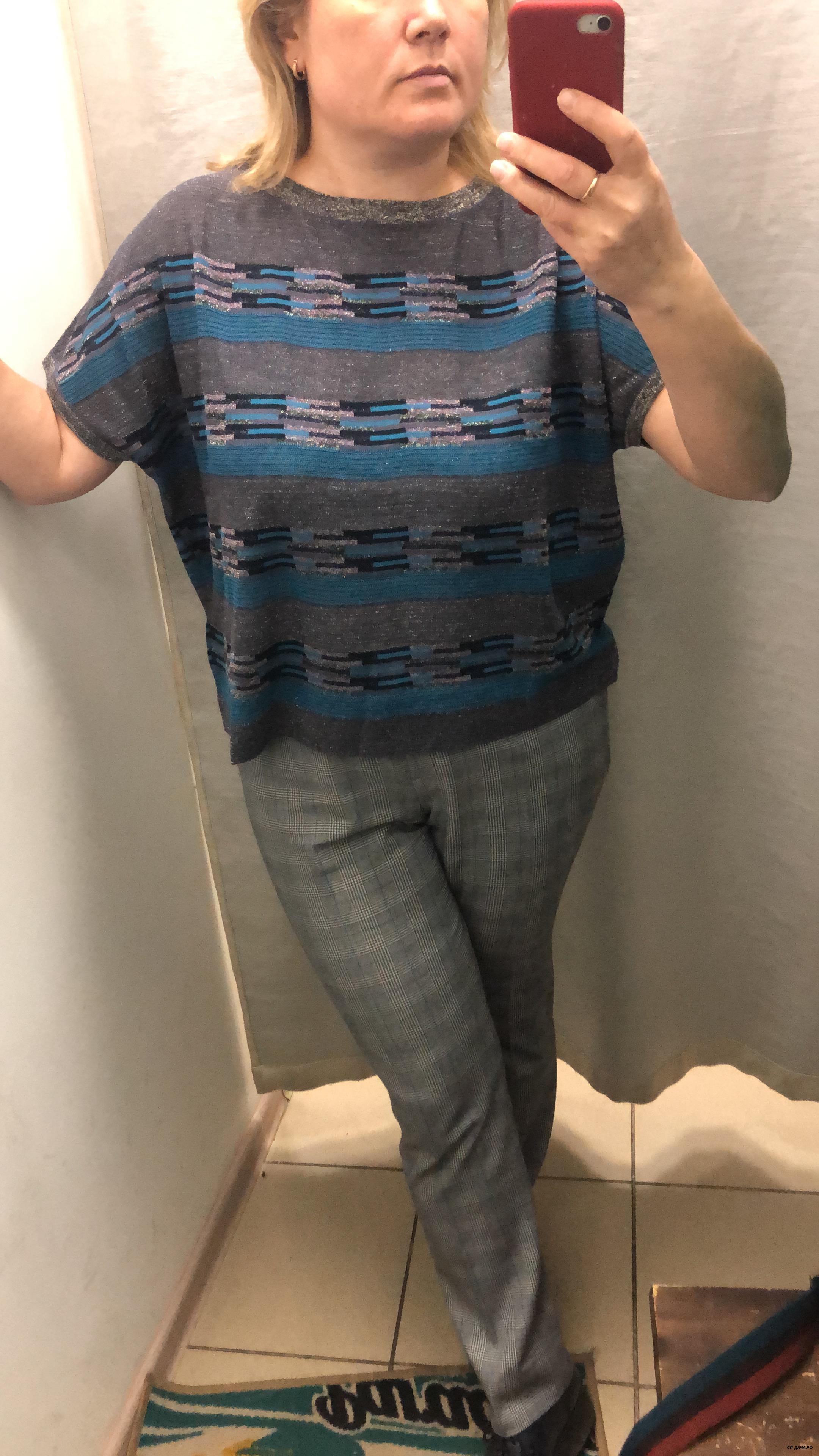 эта подошла, мой размер, в прошлый раз была в однотоных брюках смотрелась кофта лучше. материал плотный