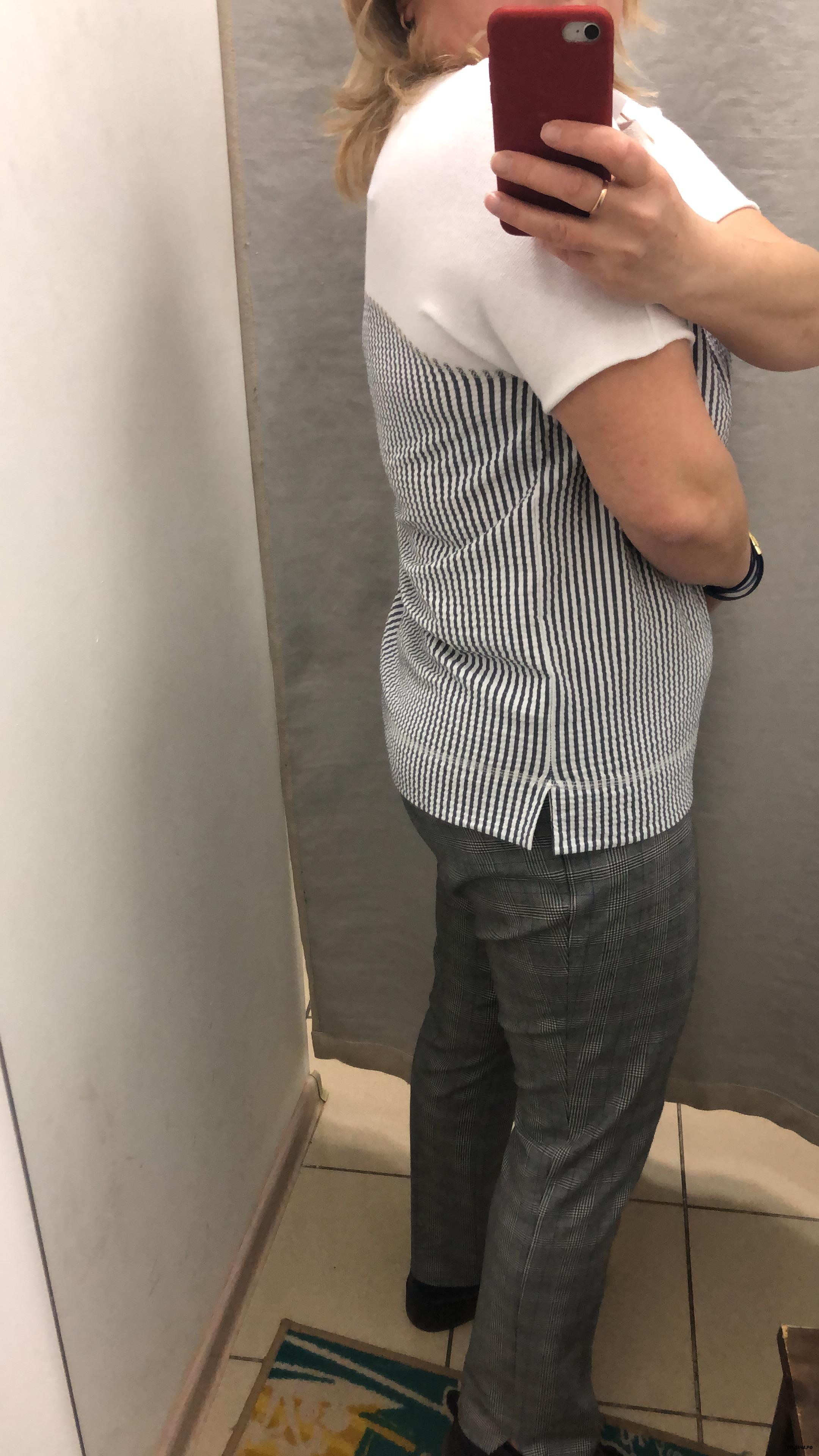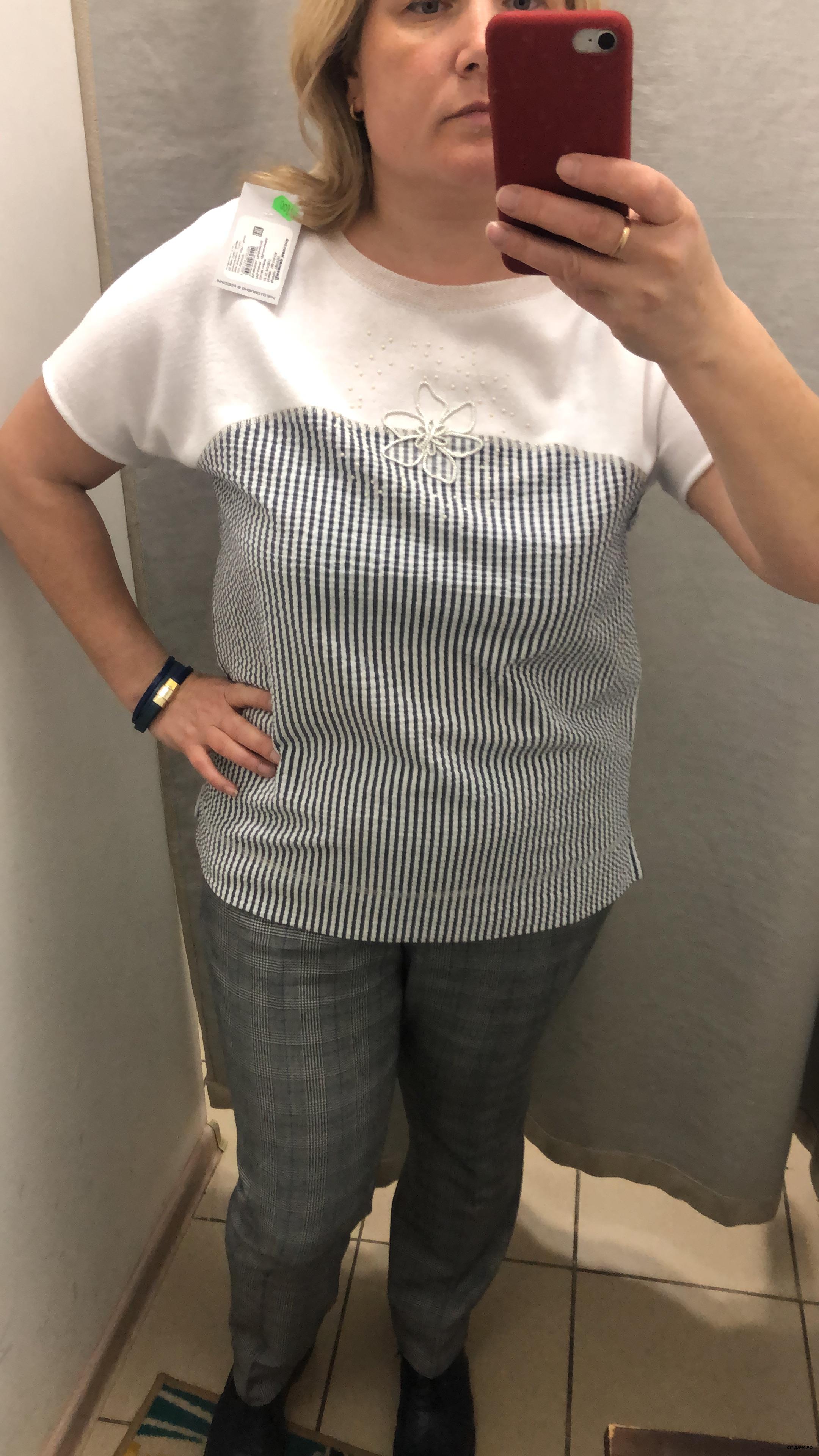 тоже отличная блуза на лето, верз трикотаж, низ жатка. Т к разный материал и проходит шов сзади, не много сковывает спину когда руги вытягиваешь. х на второй фотке какая -то квадратная.
