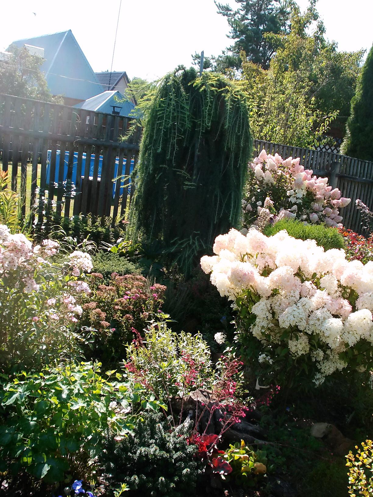 Ольга очень красивые ваши лиственницы, а как обильно цветет гортензия, листвы не видно! Подскажите название!