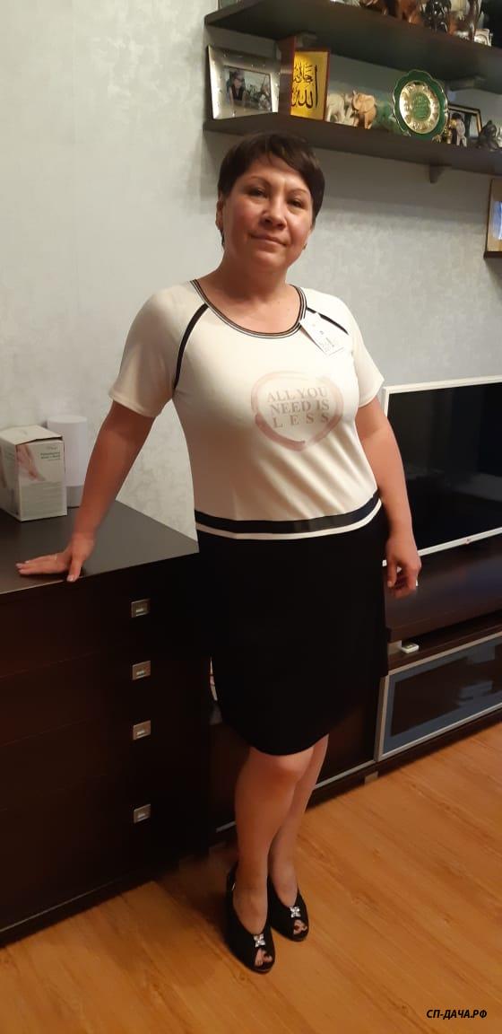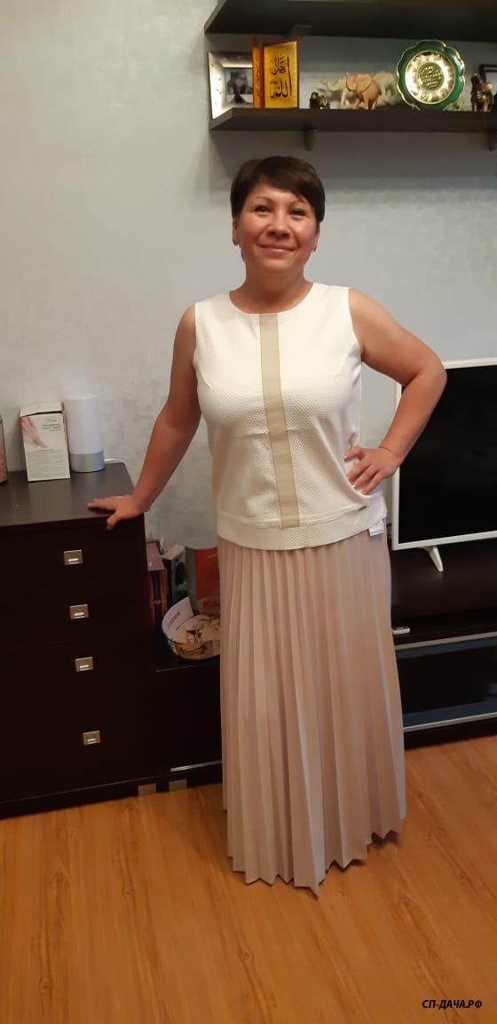 У меня размер 48, 50 ближе к 50 . Что то брала М, кофта с юбкой плиссе. А что то брала L ( футболка перевёртыш, Зелёная кофта. Платье М. Качество в Альпе мне очень нравится.