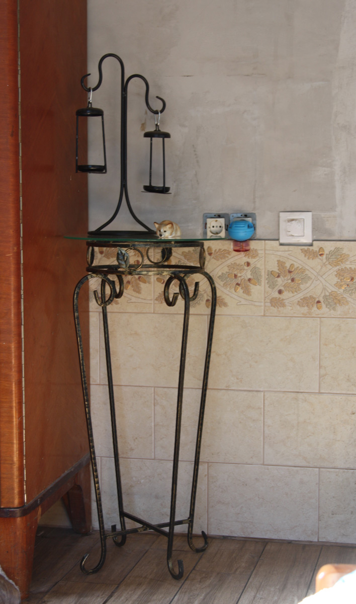 И столик до кучи, с подсвечником.