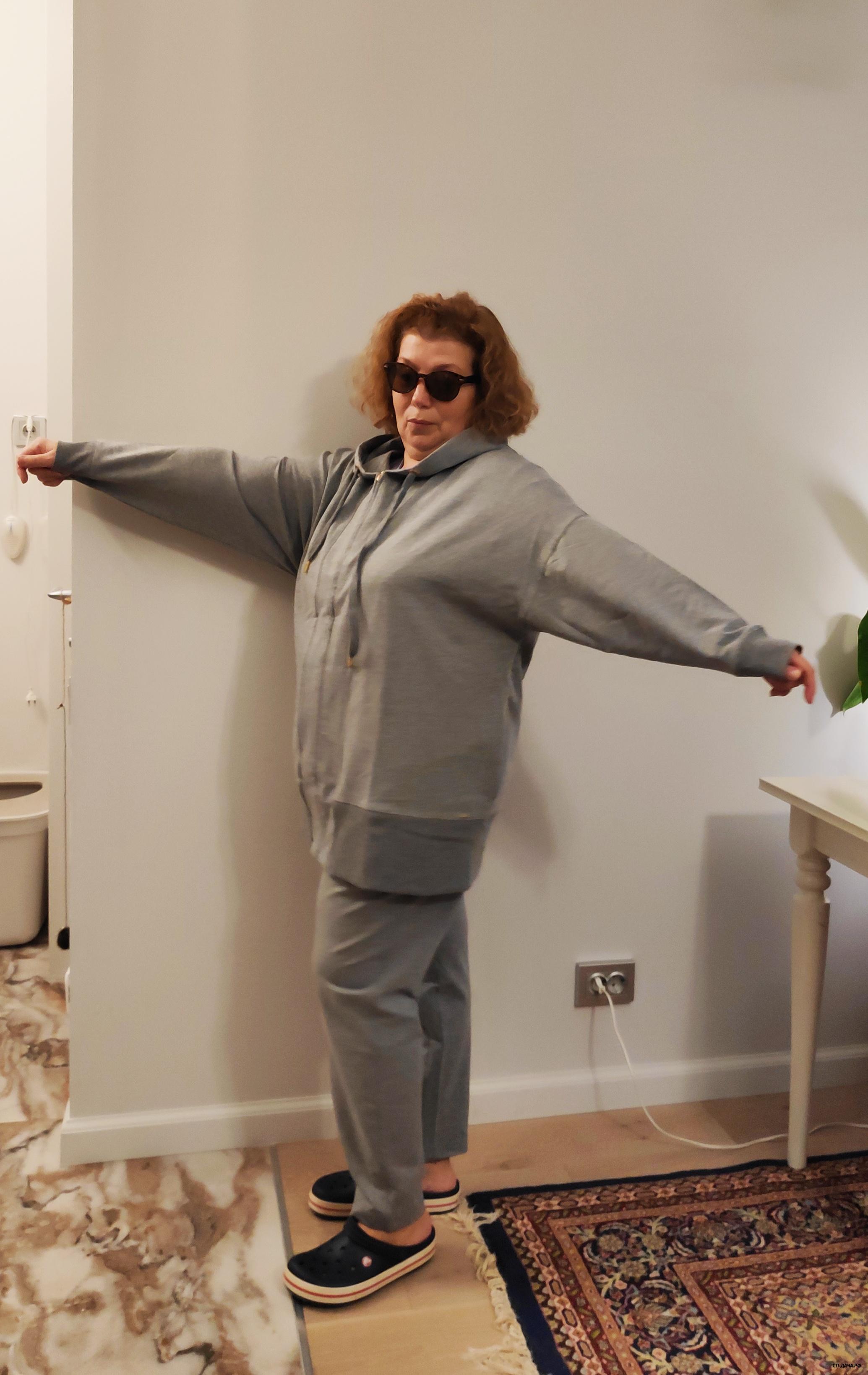 Серое худи р. 56 мне велико(( очень обидно, что не попала в размер, прекрасная вещь для поездок и на летний вечер. брюки 56сели в размерПристраиваю! Можно померить, а я обязательно закажу себе поменьше. Цена 1590