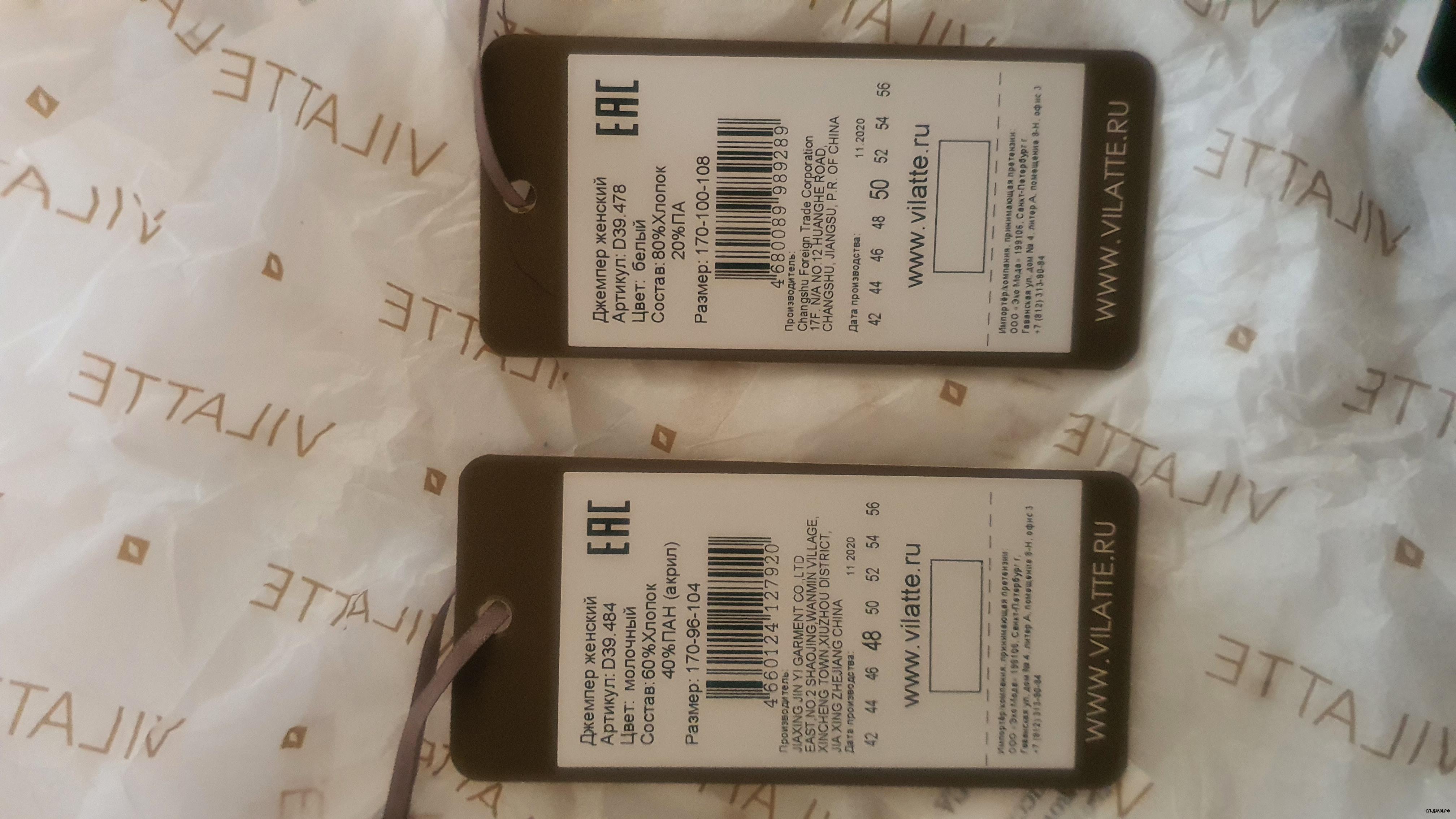 А можете сфоткать бирки? В накладной все верно стоит.