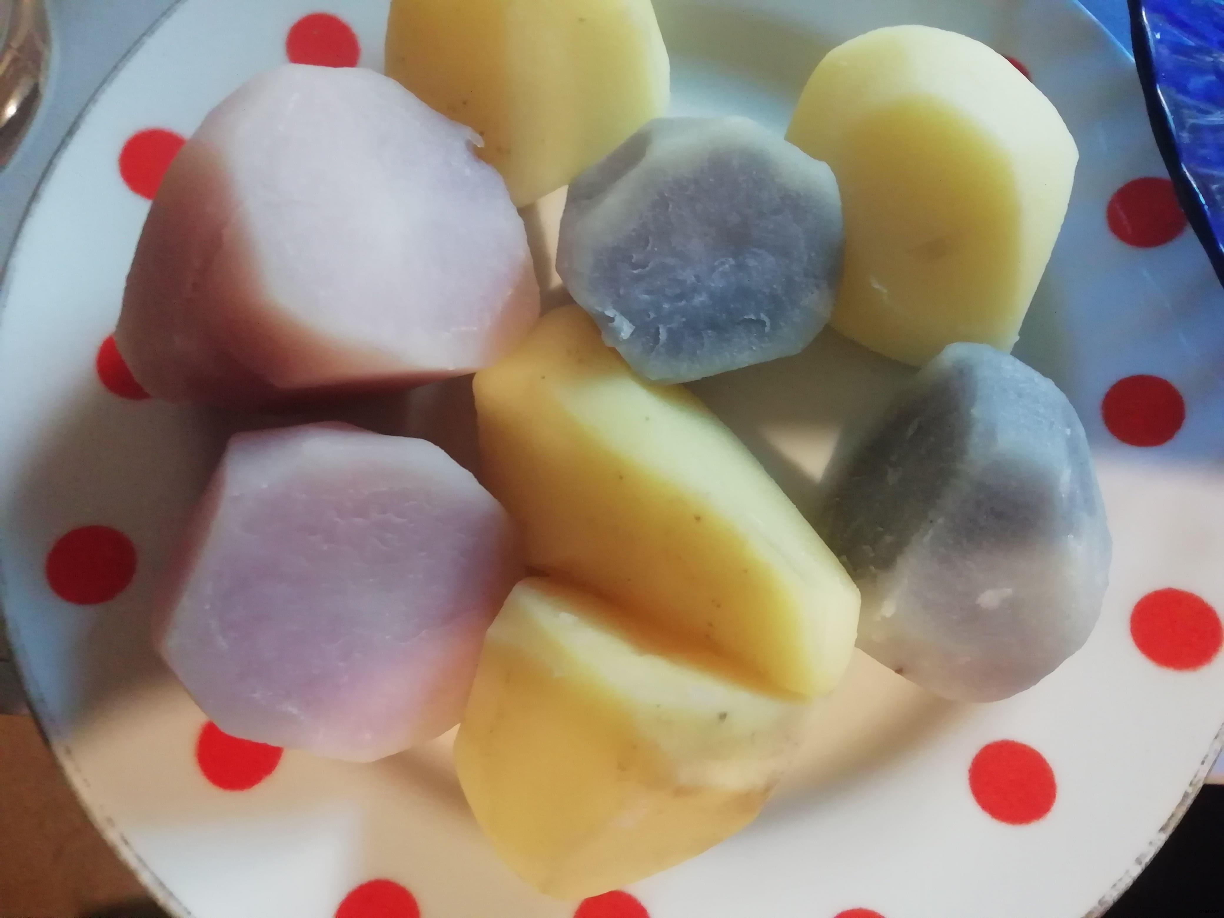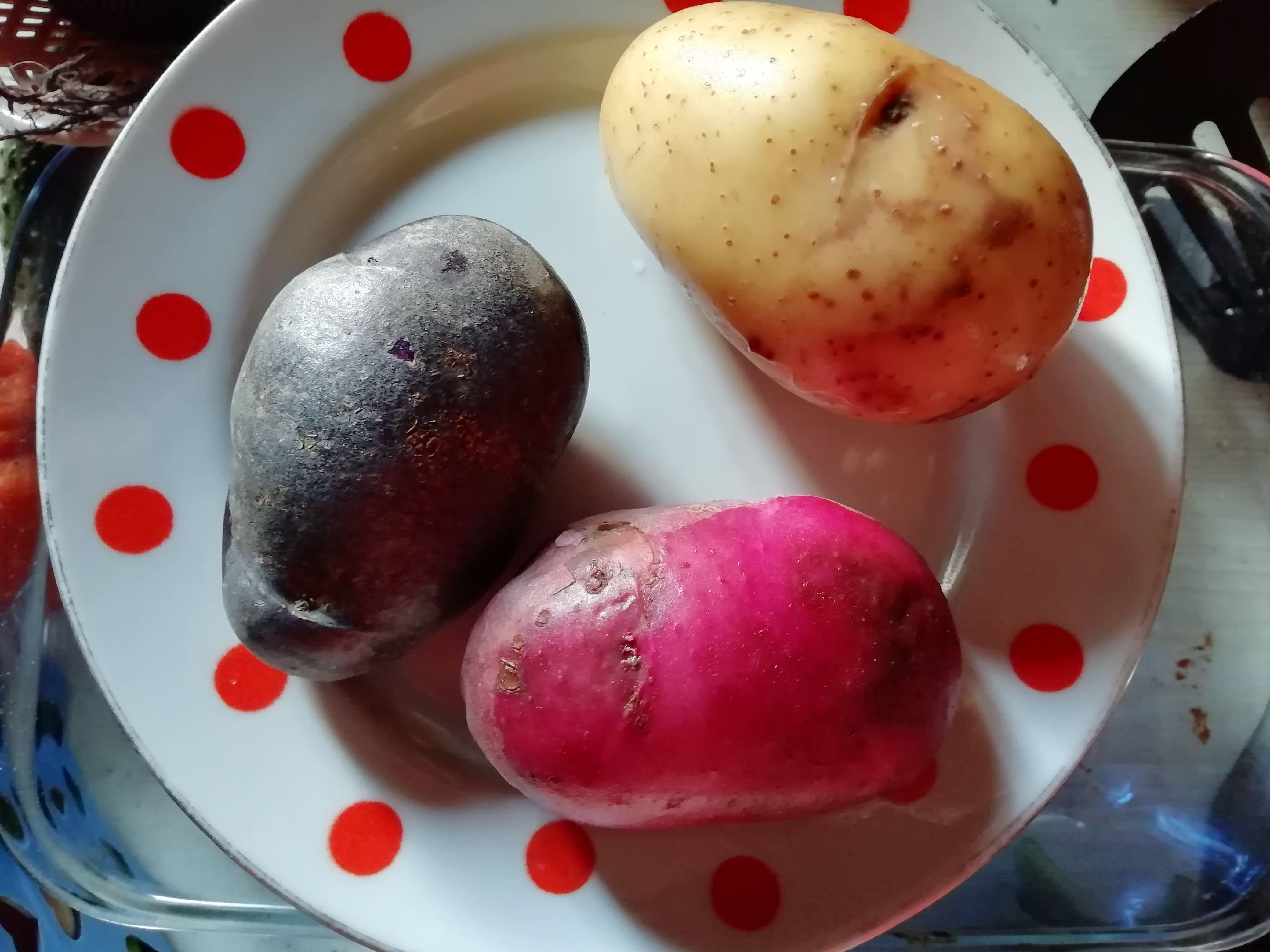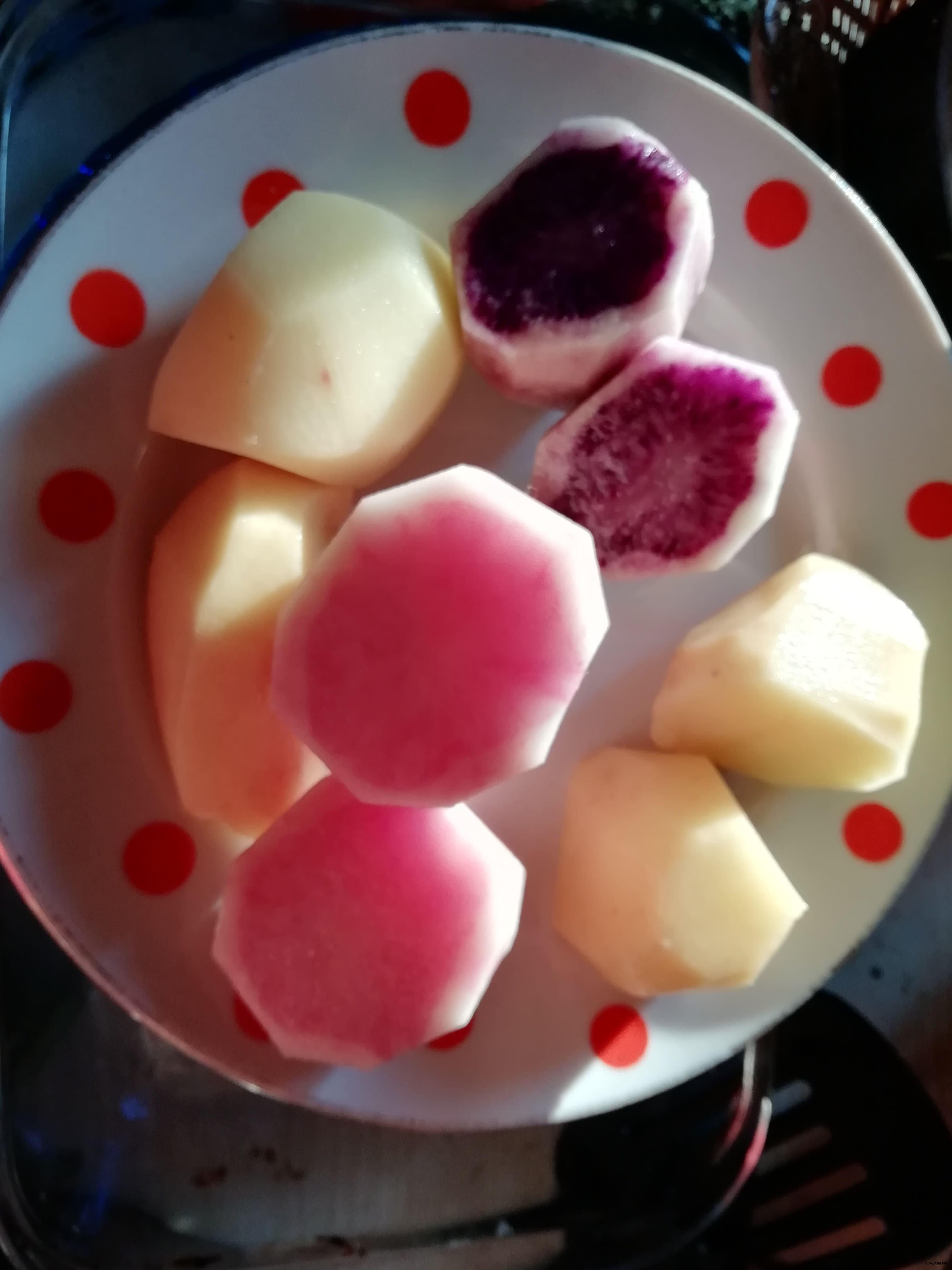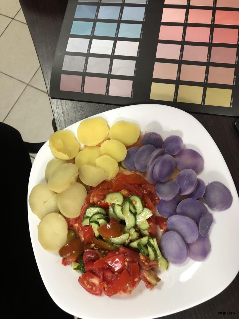 Гранада хорошо удалась. Для меня это теперь самый вкусный сорт. Правда, в ней много крахмала, она при варке уже лопалась. Но вкус божественный. И крупная. Фиолетовый крупный, но прям не могу себя заставить сделать из него пюрэшку)). Пакистан тоже хорош, из глазка.
