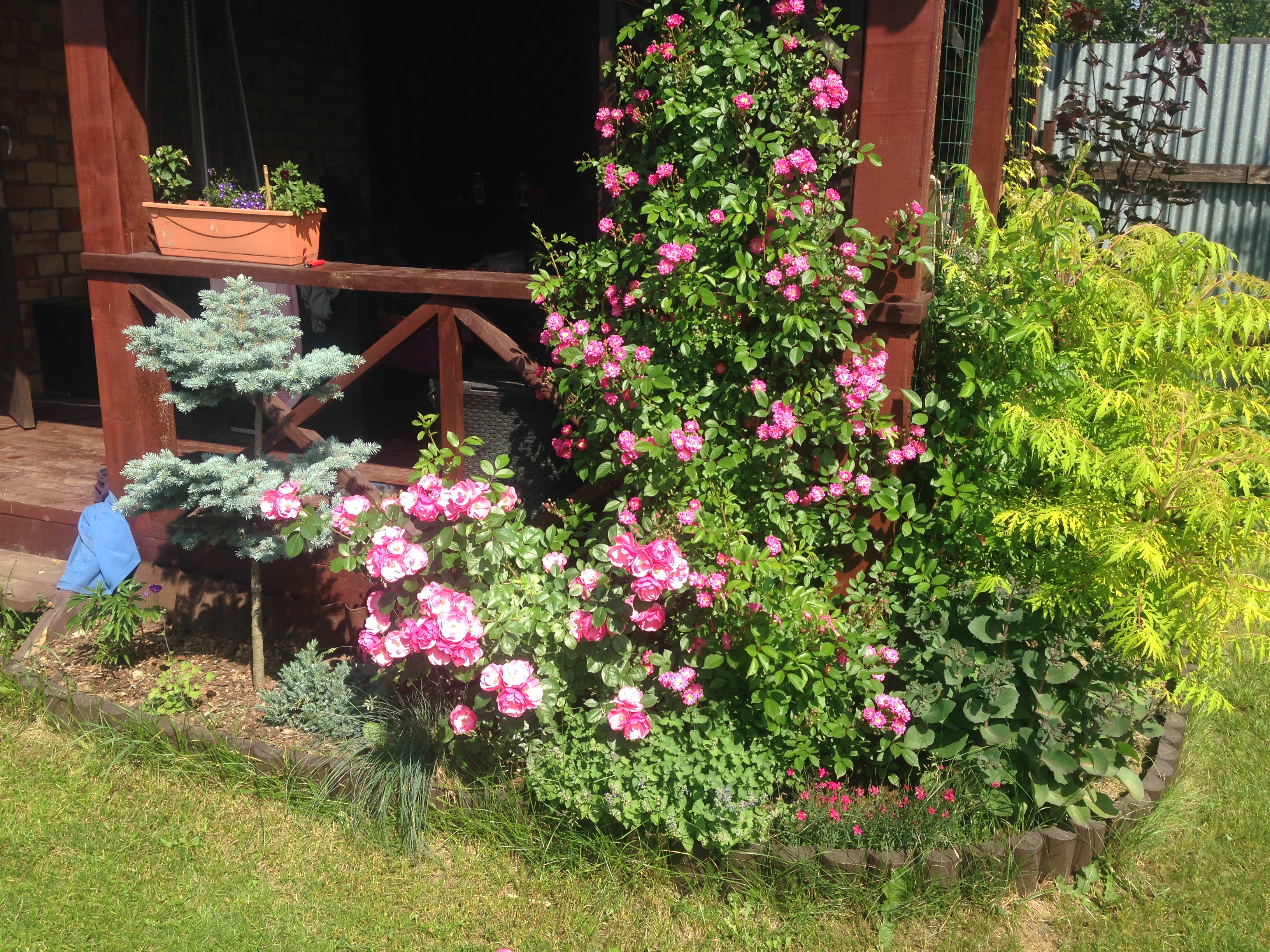 Ты молодец. Я свою розу пока вокруг шпалеры обкручиваю. Но чувствую- Надо.