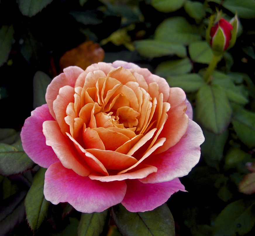 У Salita очень яркий цвет – пылающий оранжево-алый. Цветки средних размеров (8-9 см), элегантные, махровые, по форме похожи на чайно-гибридные розы, появляются по одному или в небольших пышных кистях. Они красиво оттеняются темной блестящей листвой. Молодой прирост насыщенно-пурпурный. Куст достигает 3 м и цветет практически непрерывно. (CRW)