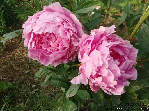 Огромный розовый пион с прочными стеблями.