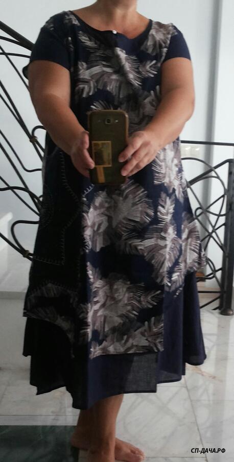 Пристрой платье т. синее двойное не просвечивает! Тонкий легкий хлопок 100% закупка Индиана( Ирина Зорро) размер 3хl , 62см между проймами, силуэт трапеция на любые бедра. 1300р.