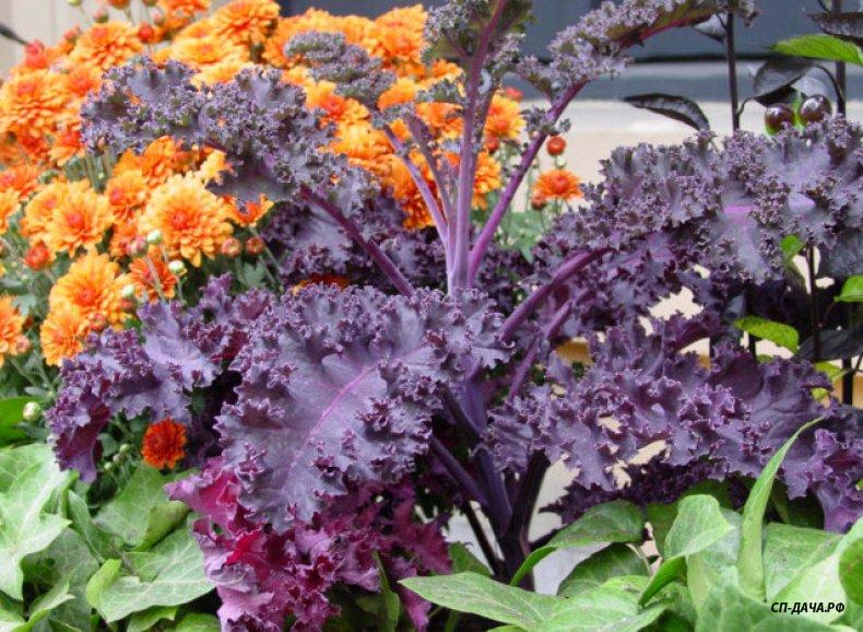 Про салат написали, действительно разные сорта салата очень украшают грядки. Еще сажала капусту листовую Редбор, у нее ствол и листья фиолетовые, и листовую Рефлекс, листья изумрудно зеленые и кучерявые, красиво украшают. Своего фото нет, вот из интернета В закупке Хупта оба сорта покупала, можно Лену Udaccha попросить добавить в таблицу.Пальма писал(а):Чего бы ещё?