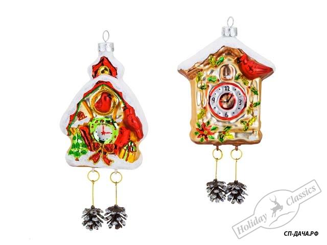 Часы-ходики "Рождество в лесу" асс. из 2-х (стекло) 7,7х16 см