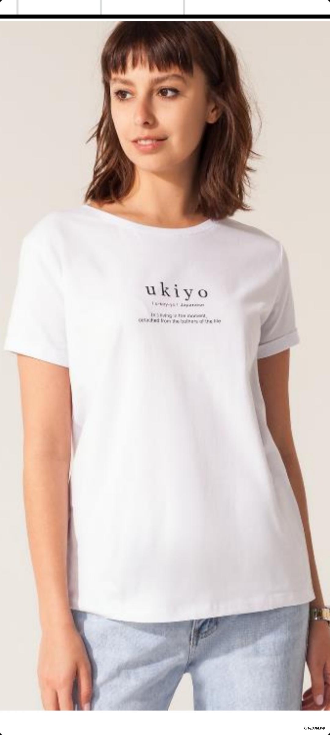 D49.783 Футболка из премиального хлопка с фактурным лаконичным принтом с ukiyo цвет белый р. 44