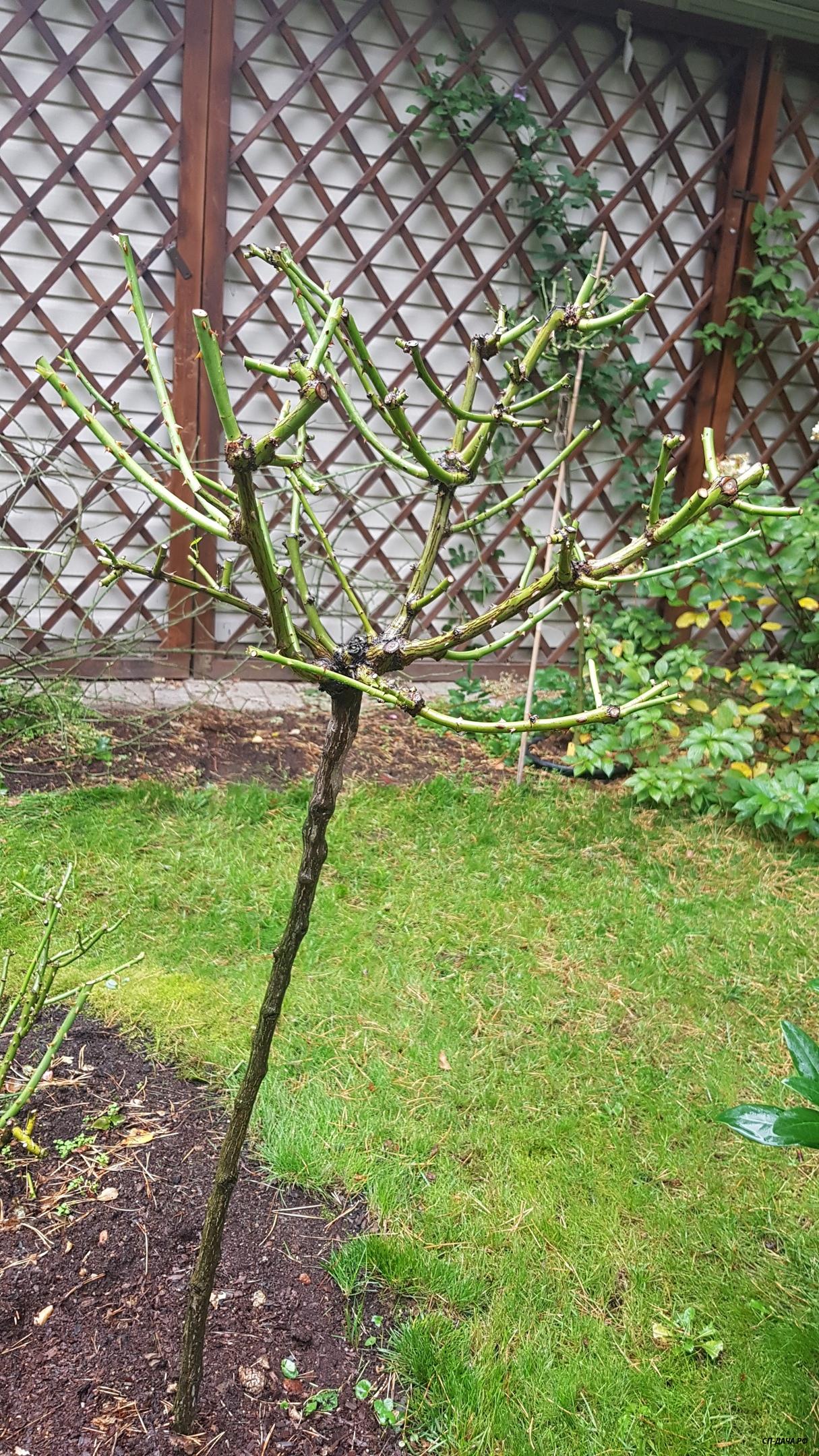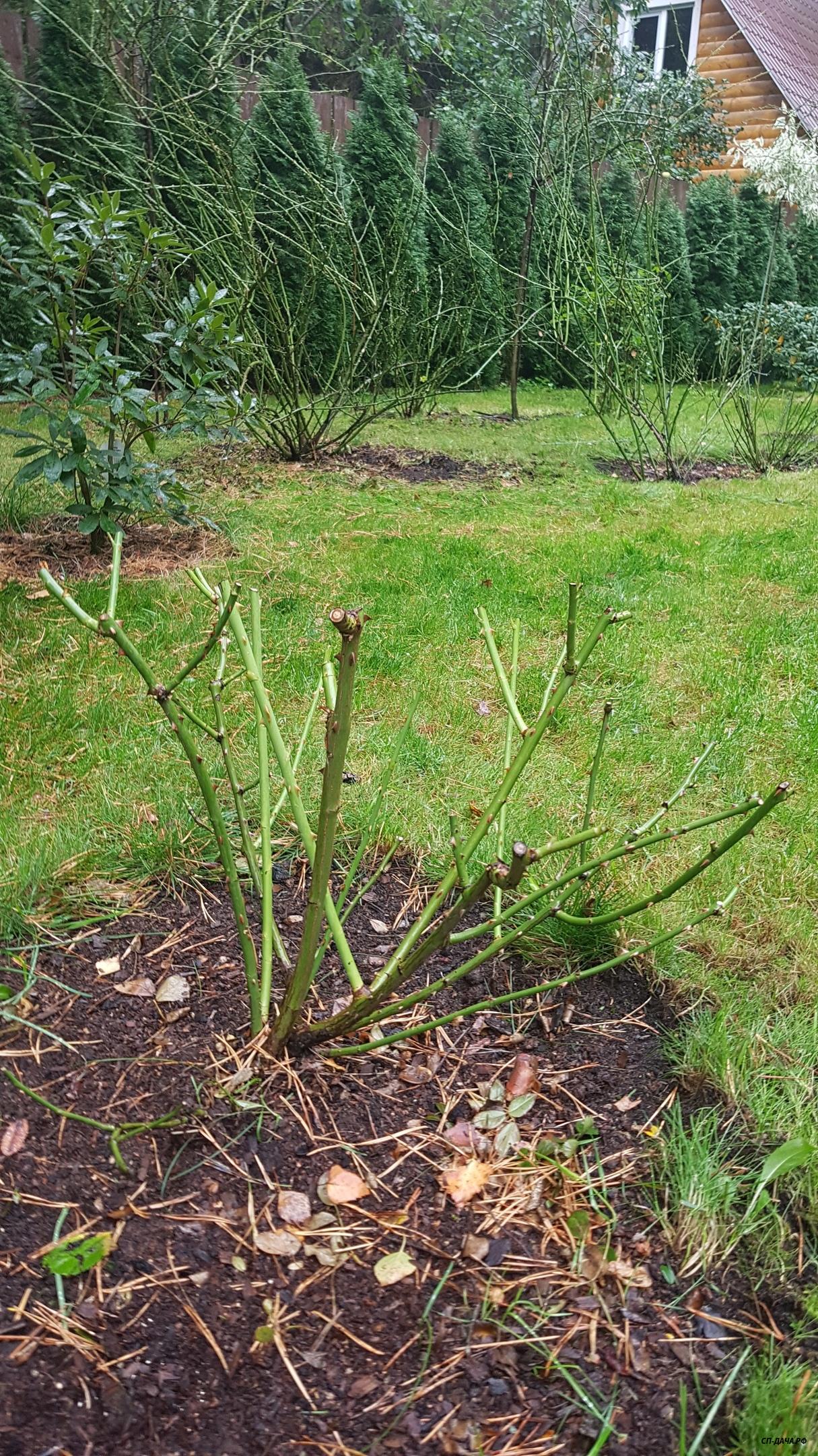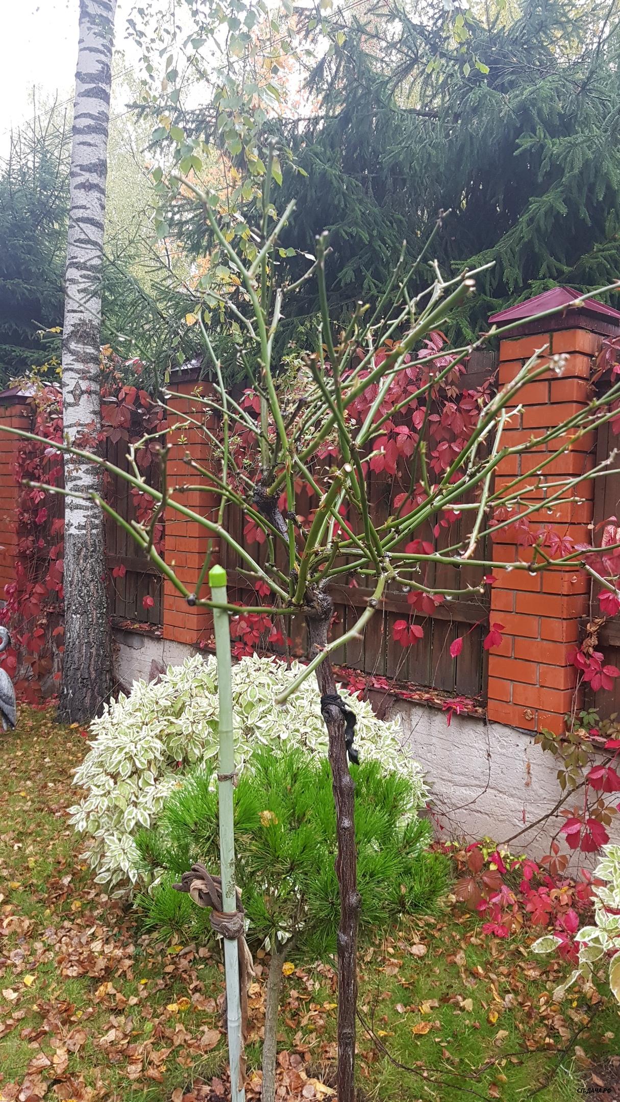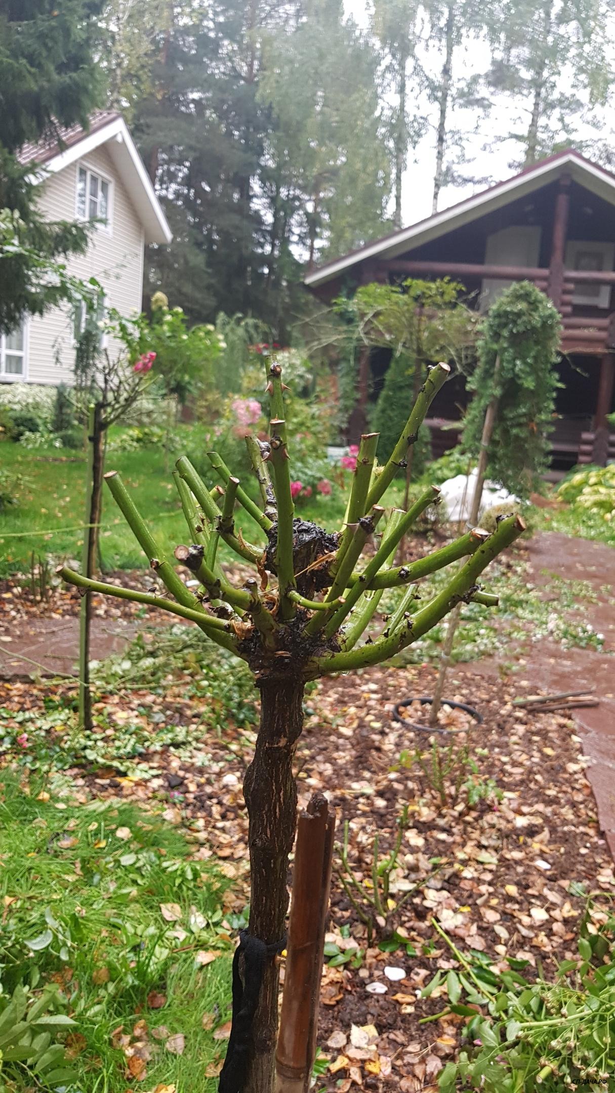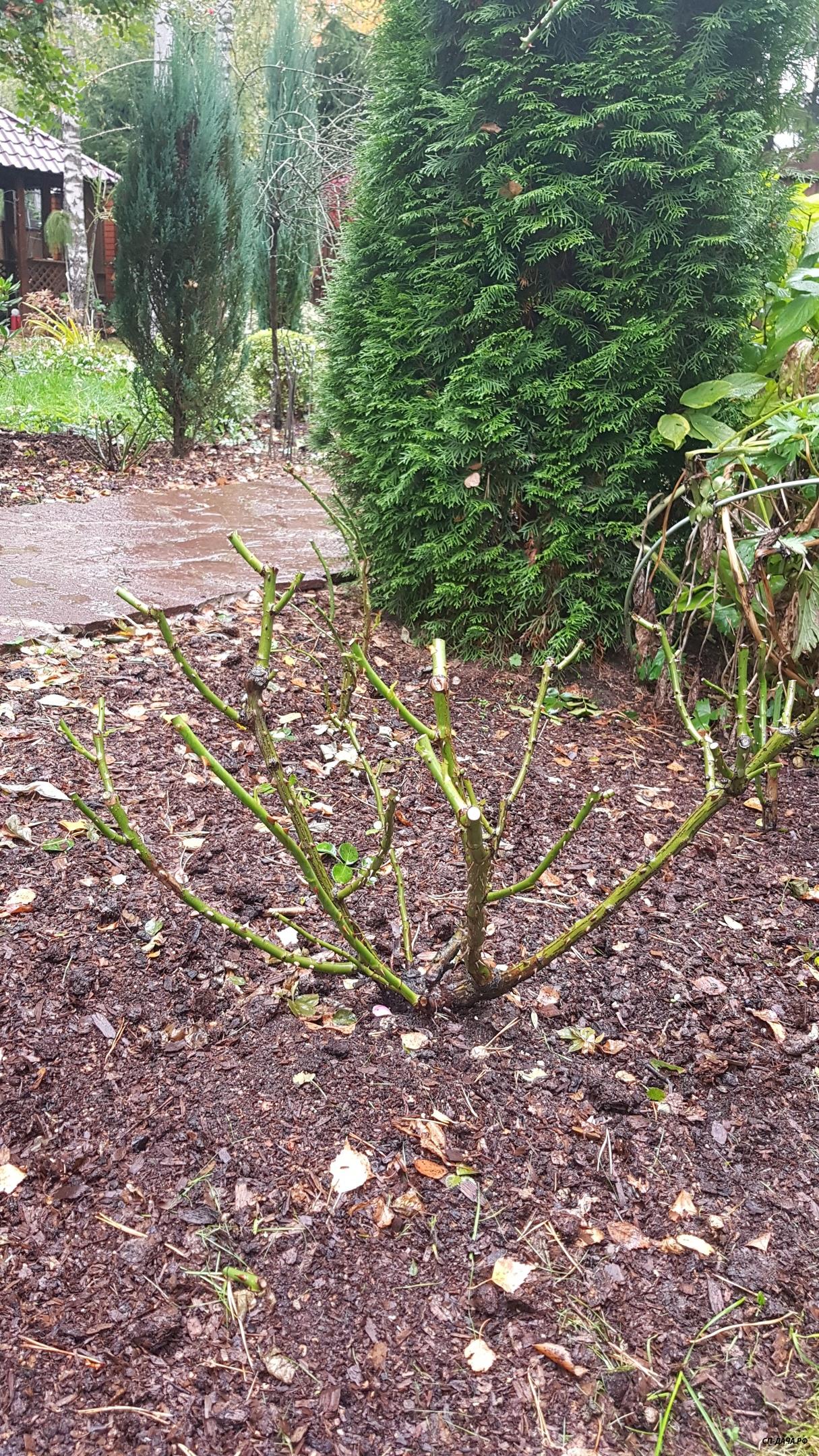 Наташенька, ничего страшного с розой не случится. Можно и замазать ранку, если побег выломался из прививки и образовалось углубление. Если же он сломался не доходя до прививки, то просто острым секатором делаем ровный срез на ближайшую внешнюю почку и все. А вообще, я особо не напрягаю розы укладыванием на зиму... Не хочет ложиться и Бог с ней, обрезала куст в виде широкой чаши и пусть себе радуется... Вот так смотрелись мои 2 куста William Shakespeare прошлой осенью после обрезки. В этом году обрезанные кусты еще не фотографировала...