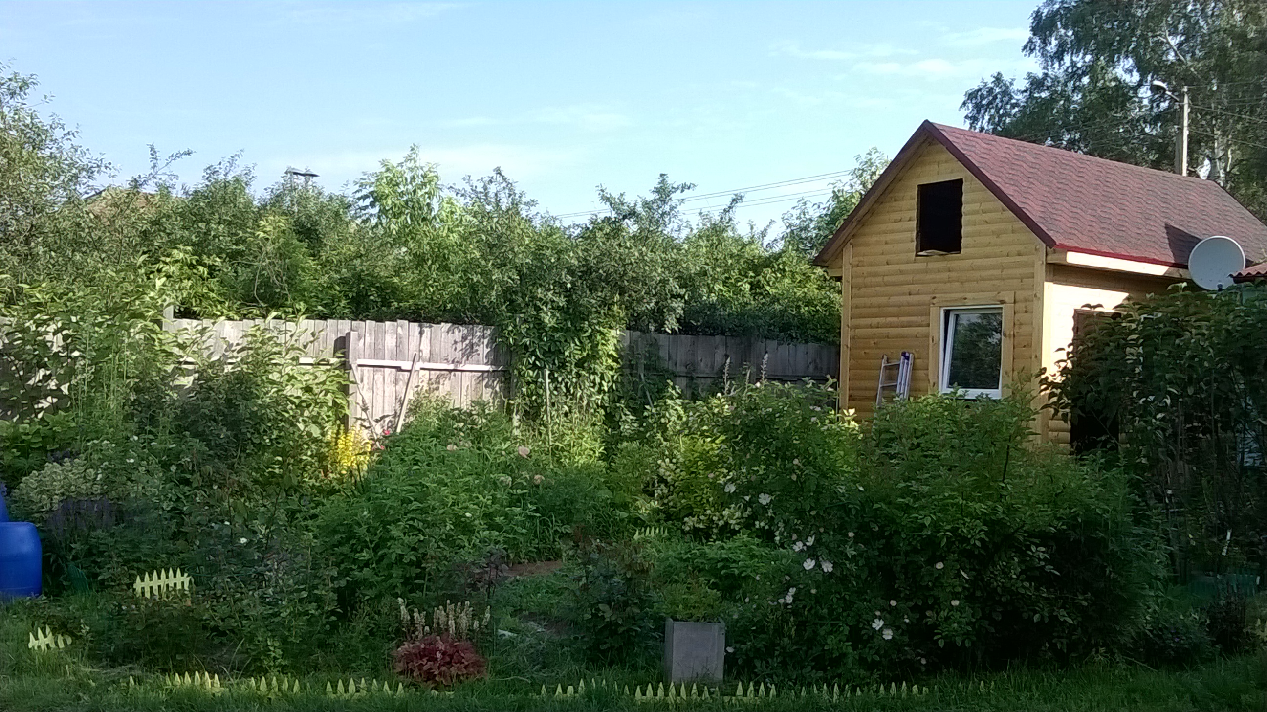 А у меня - сарайка достраивается)) Скоро там будут просторные стеллажи для моих приблуд огородных, а в последующем времени, когда разберётся старый дом - приделаем терраску в метра 3))) - там будет рабочая зона для мужа с возможностью готовки заготовок, копчулек всяких и т.д.