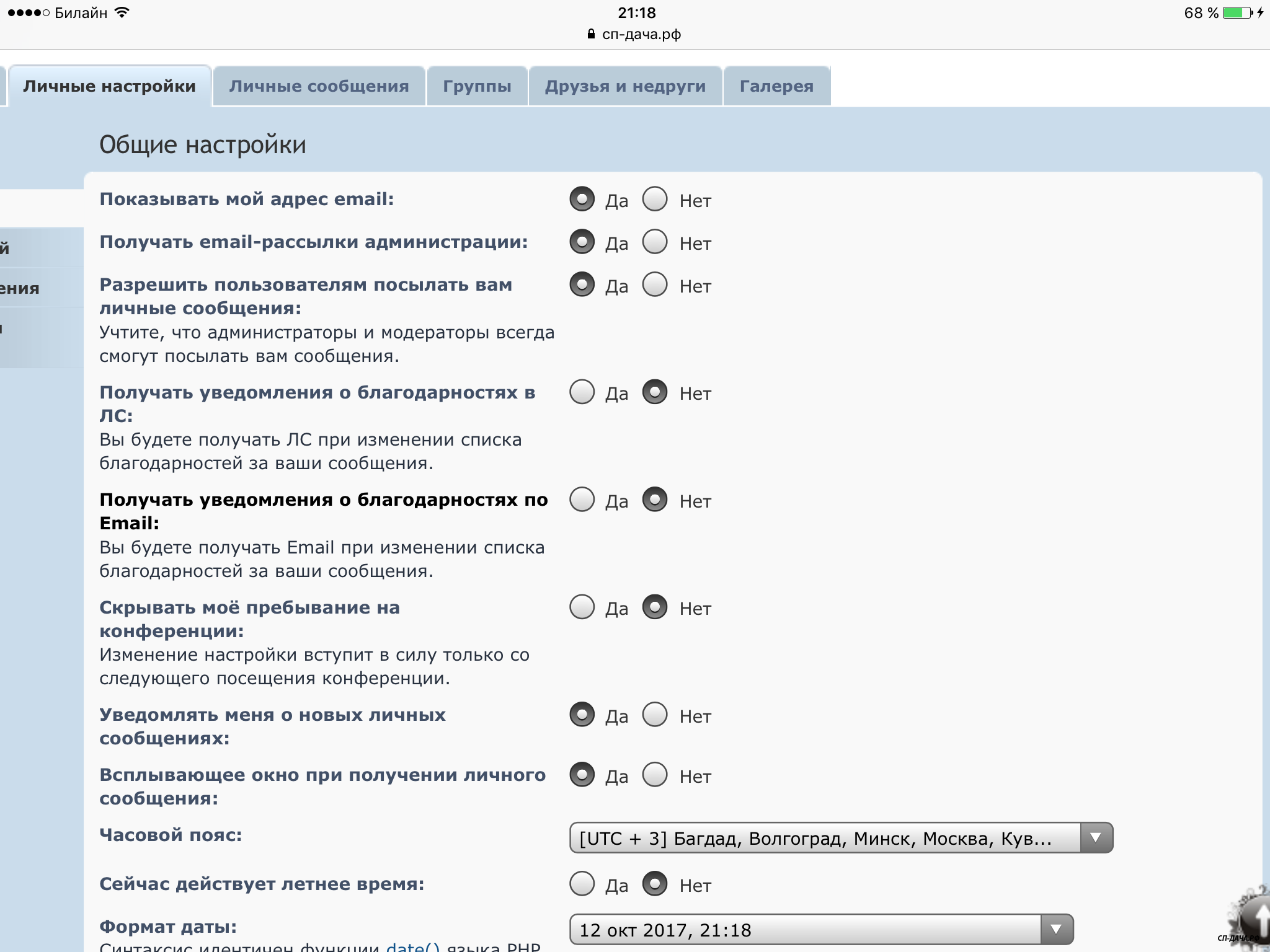 Уведомления о личных сообщениях не приходят на почту., хотя в настройках все галки стоят.