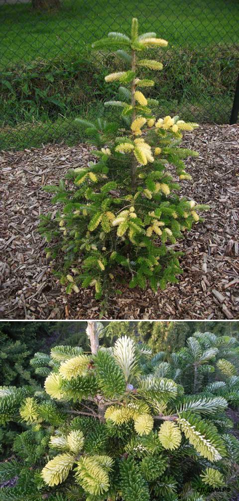 В пристрое имеется пихта Abies koreana 'Gelbbunt'. Посмотрите какая красотка.