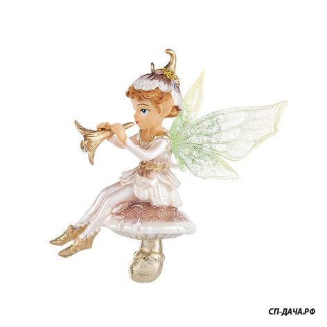 Украшение на ёлку Эльф на грибочке с дудочкой - изделие из коллекции новогодних игрушек и аксессуаров Holiday Classics. Толика скандинавского фольклорного колорита выгодно освежит и украсит вашу новогоднюю ёлку. Герои европейских и скандинавских легенд и эпосов - эльфы - давние друзья и соратники Санты в нелёгком деле смены старого года на новый. Сказочный эльф в оттенках от кремового до перламутра играет на золотистой дудочке, слегка подрагивая прозрачными изумрудными крыльями. Очень красиво и романтично!