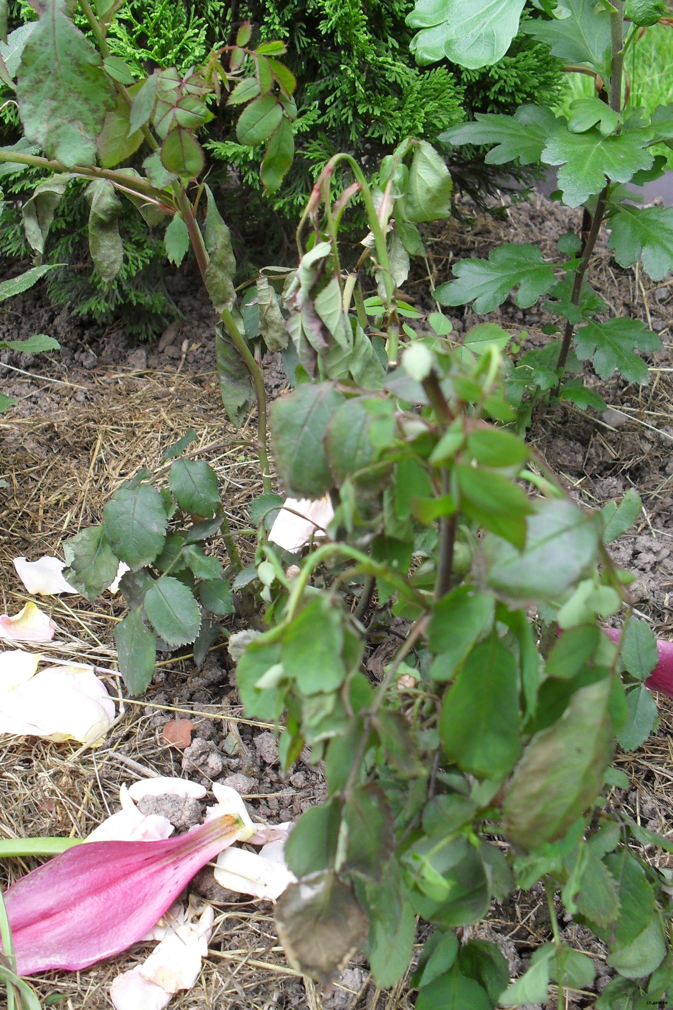 Тьфу-тьфу, одна такая.. сидит с краю розария, невысокая, поэтому сразу пришла мысль о котах, в смысле пометили,но этот ж как надо обрызгать..