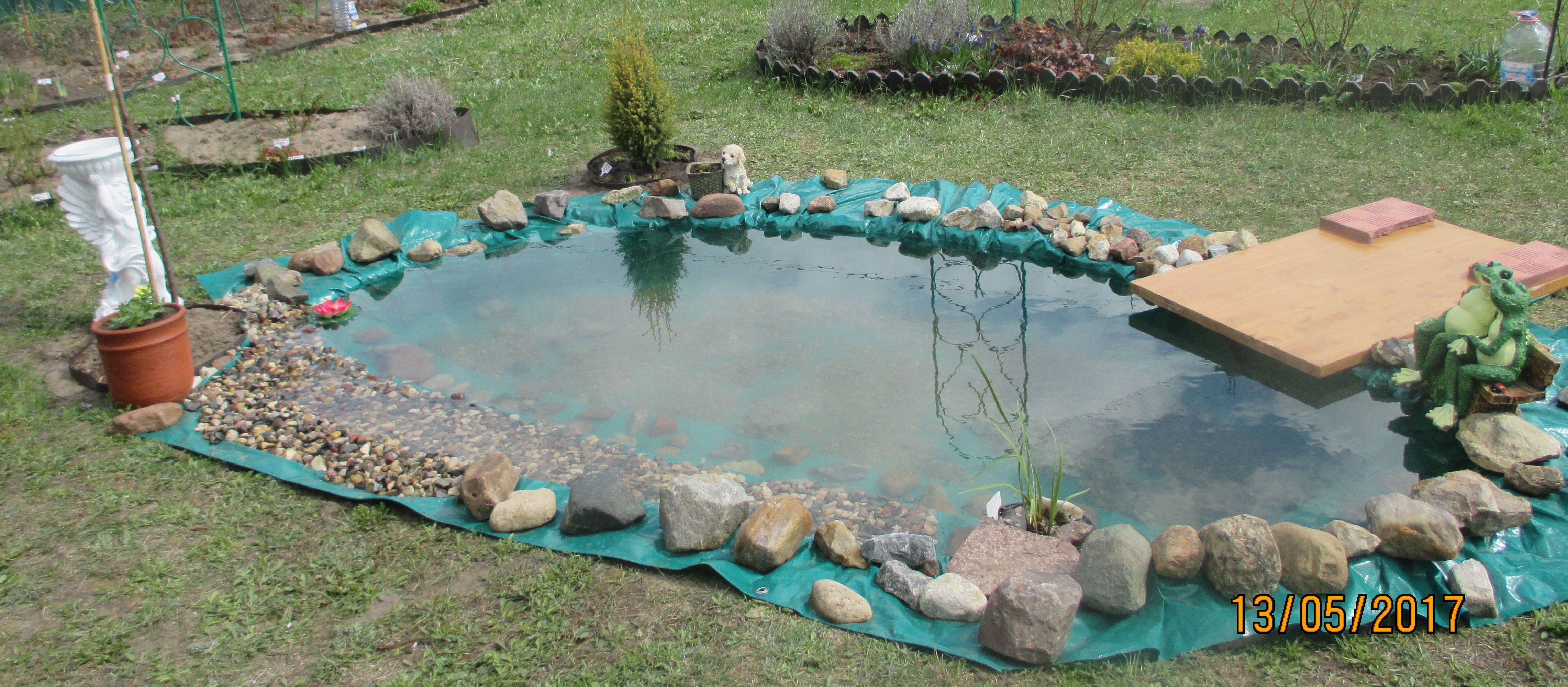 Идей особо пока нет, думаю берег оформить плитняком, пленку чтобы закрыть. Буду смотреть оформление прудов в интернете, может что на душу ляжет. А да, еще фонтанчик обязательно будет. Лягушку на болоте поймаю, я не шучу, любовь у меня к ним.