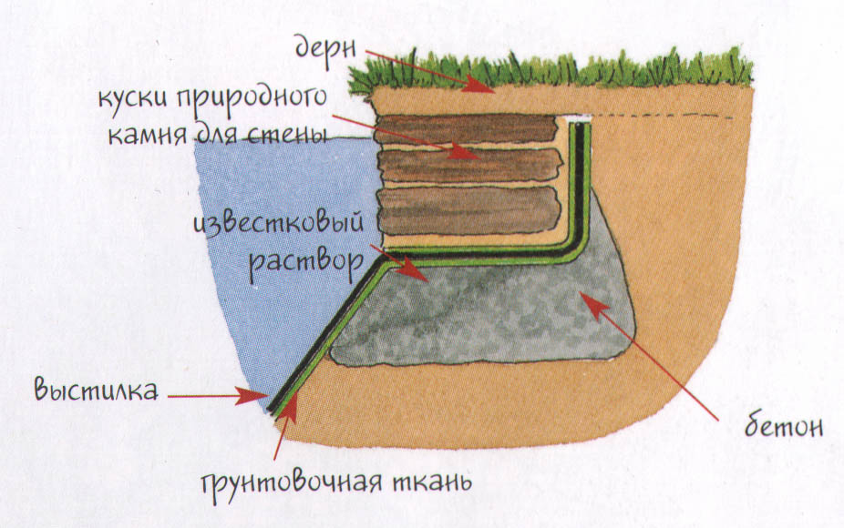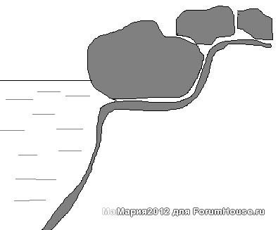 Во, нашла, схема оформления края пруда, у Верочки Сантолины с ФХ подглядела. Чтобы с краю пленку не видно было, а потом хоть камни , хоть дощечки, мостки